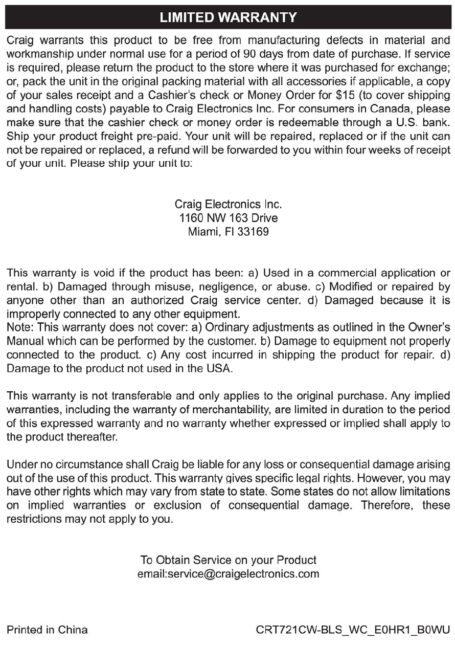 Orderly Electronics CRT1721 LAND & AIR DRONE User Manual CRT721CW BLS IM Rx