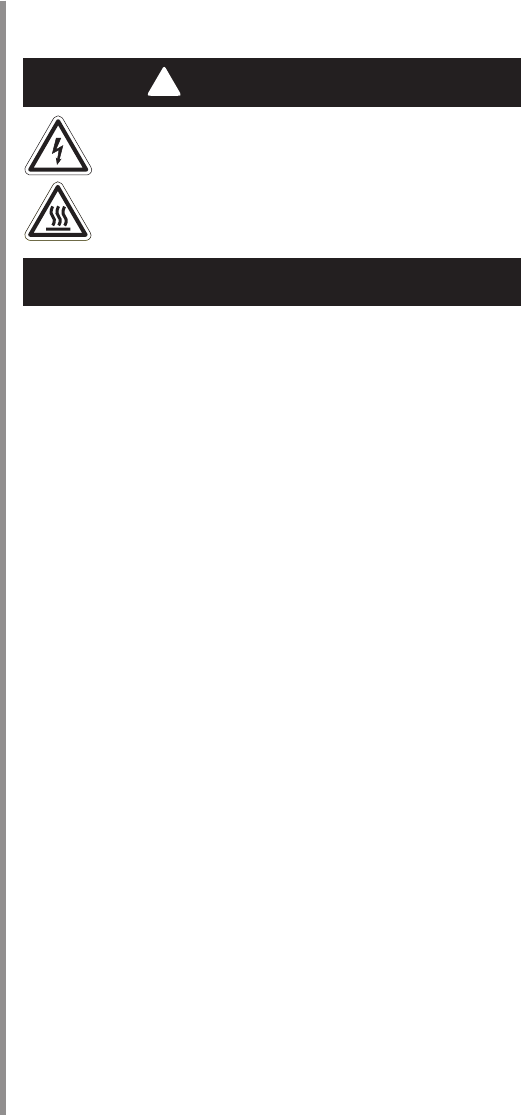 WARNING! To reduce the risk of re, electric shock, or injury