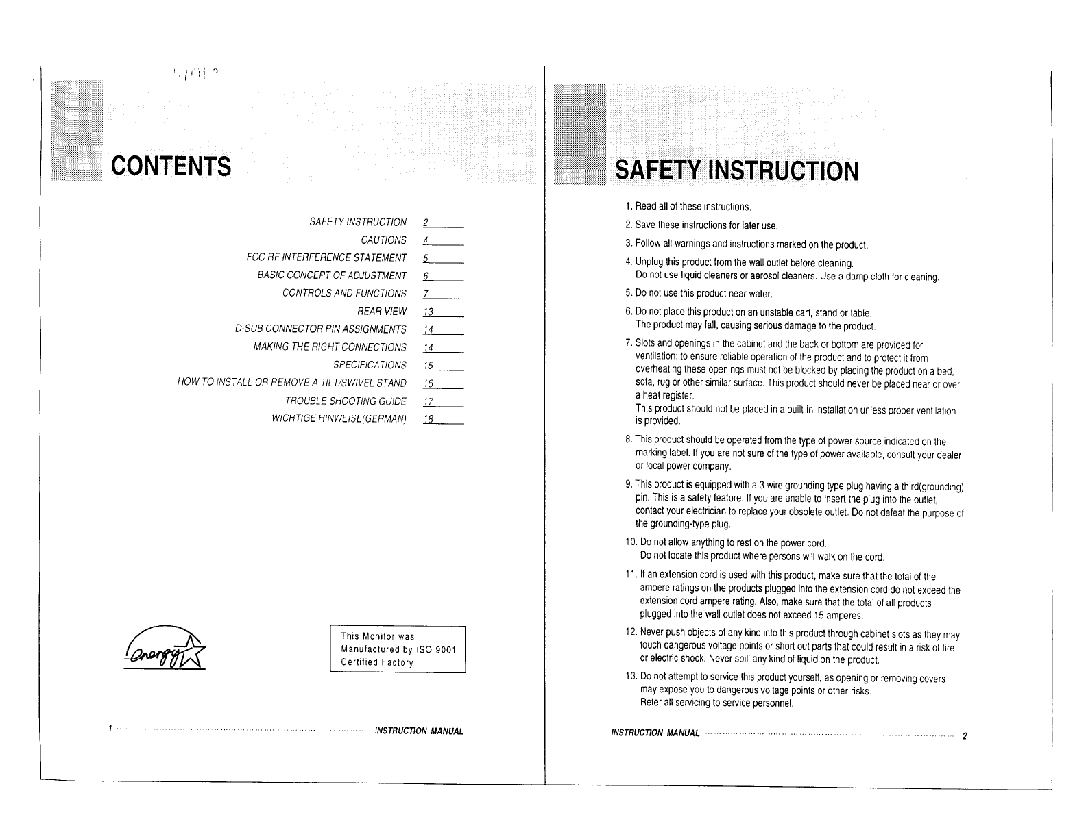 Orion Electric Co Ltd 17-inch Color Monitor Users Manual