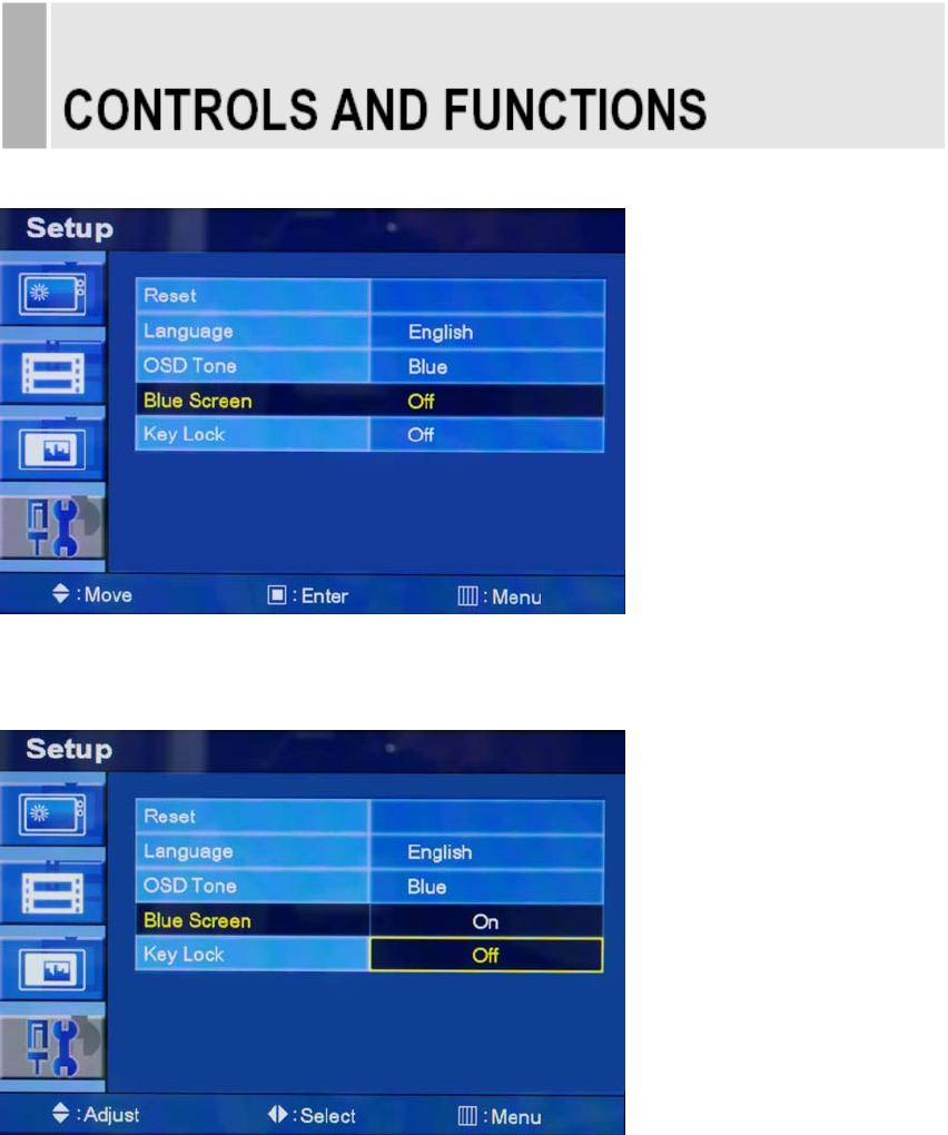 MODE GREEN Normal operation but the on screen