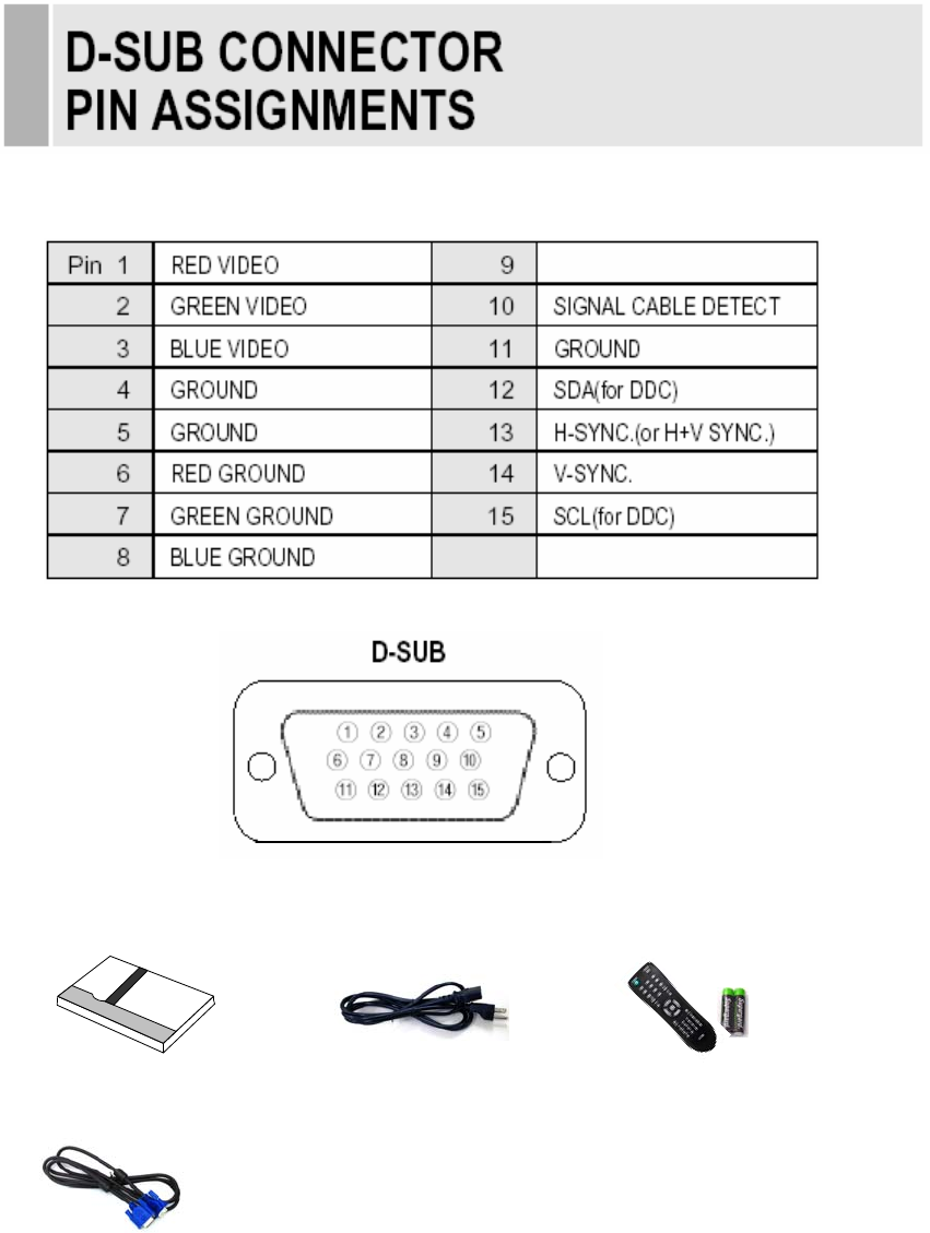 D-SUB CONNECTOR PIN ASSIGNMENTS ……………………………………………….22