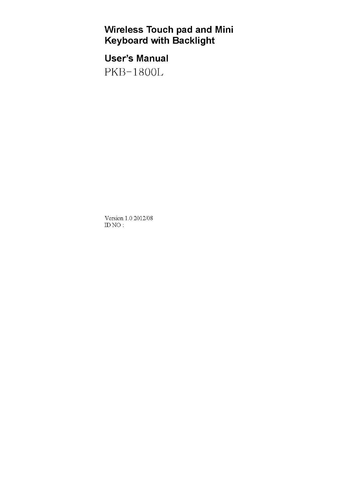 Ortek Technology PKB1800L Wireless Touch pad and Mini Keyboard with Backlight User Manual PKB 1800L Keyboard manual