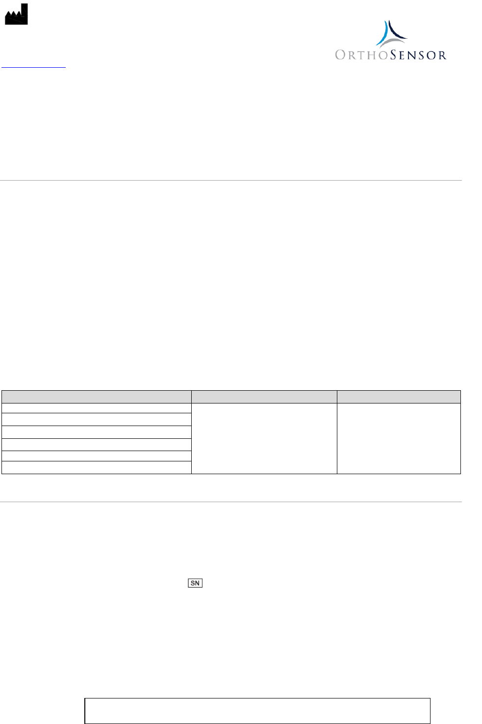 Orthosensor ORTHOSNSR7 Arthroplasty force sensor User Manual LB 5135 VERASENSE IFU for US and OUS Rev 1 TUV 12jun18b