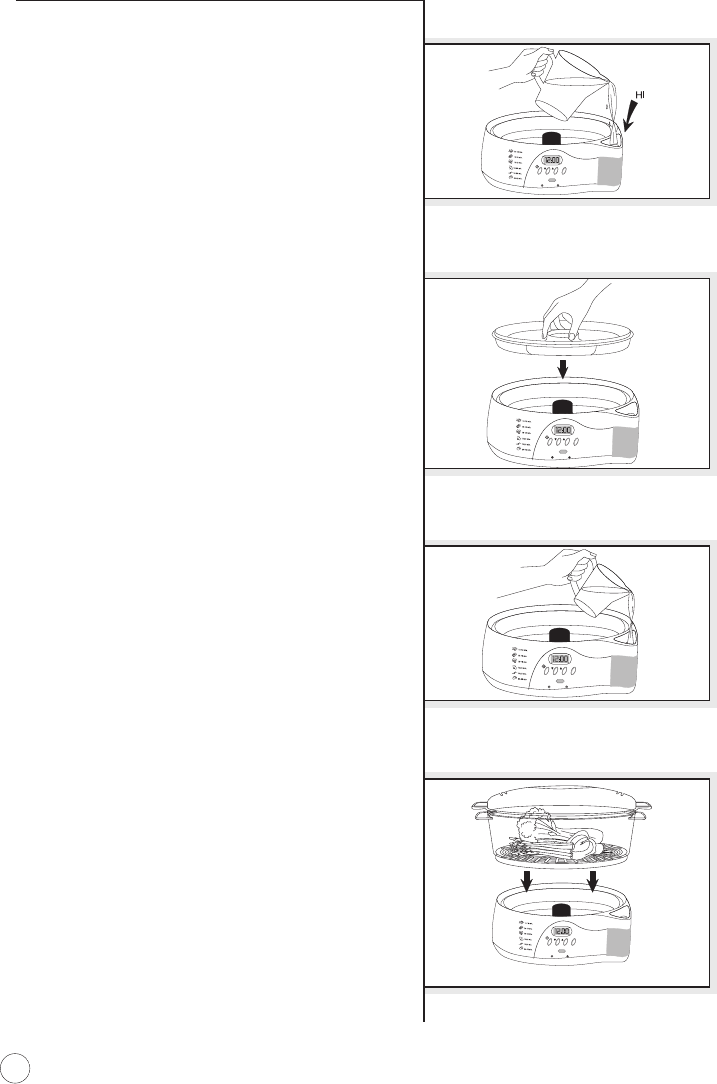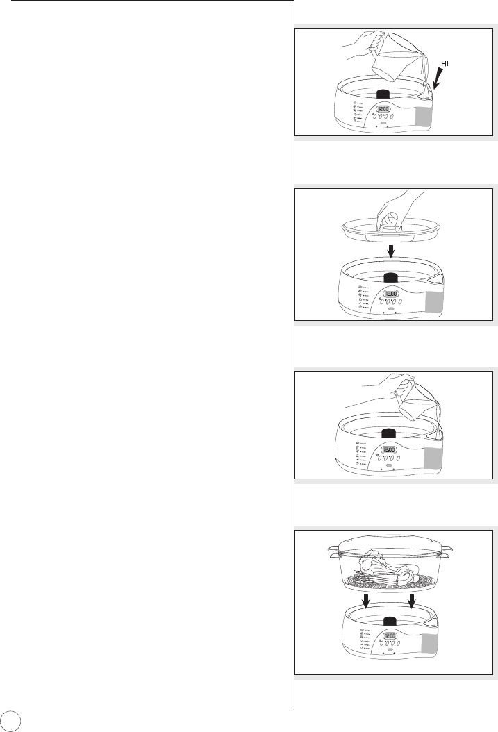 •Lift and open cover carefully to avoid scalding and