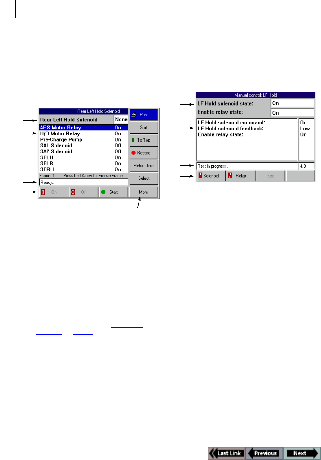 Solenoid, Relay Controls Screen
