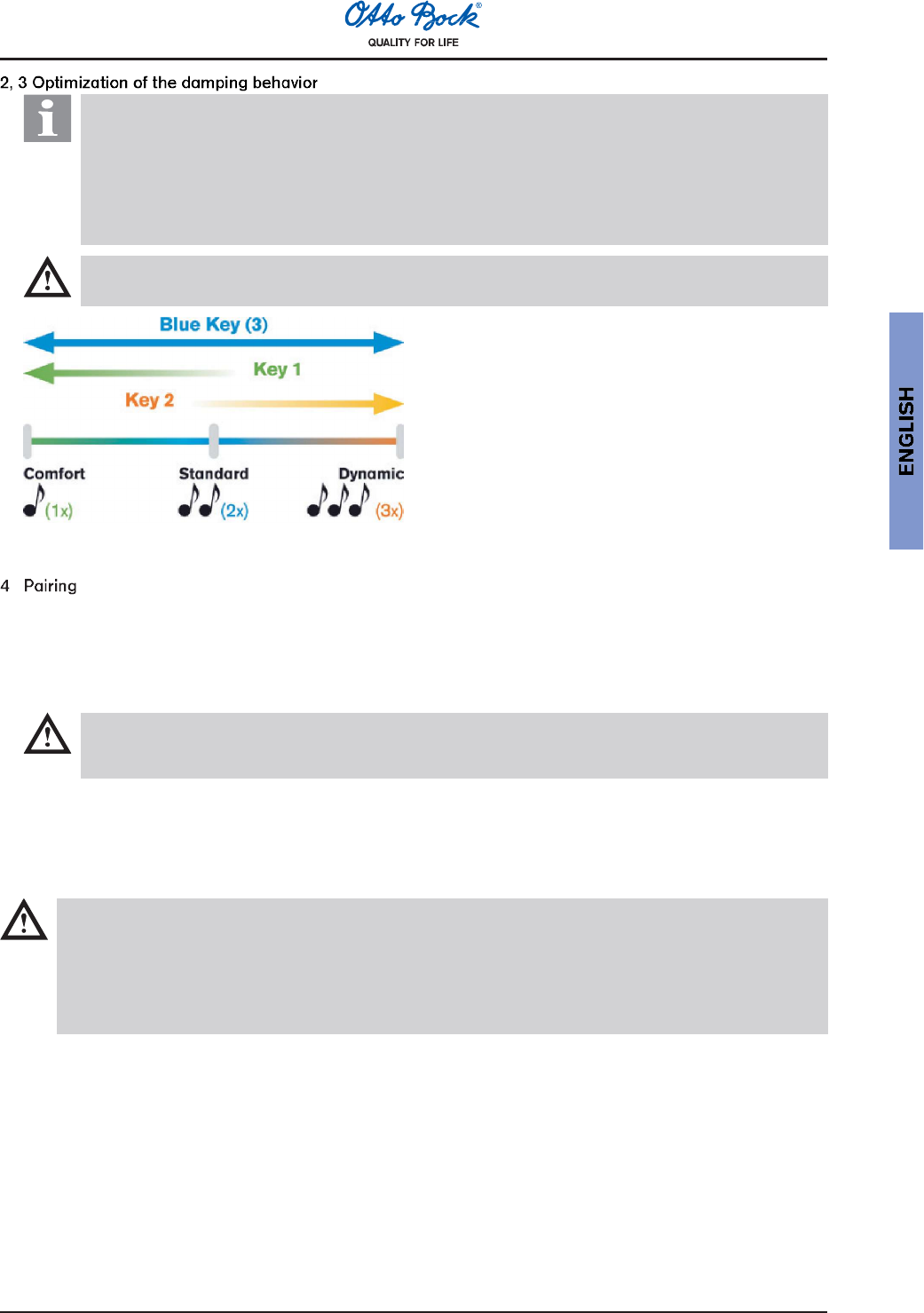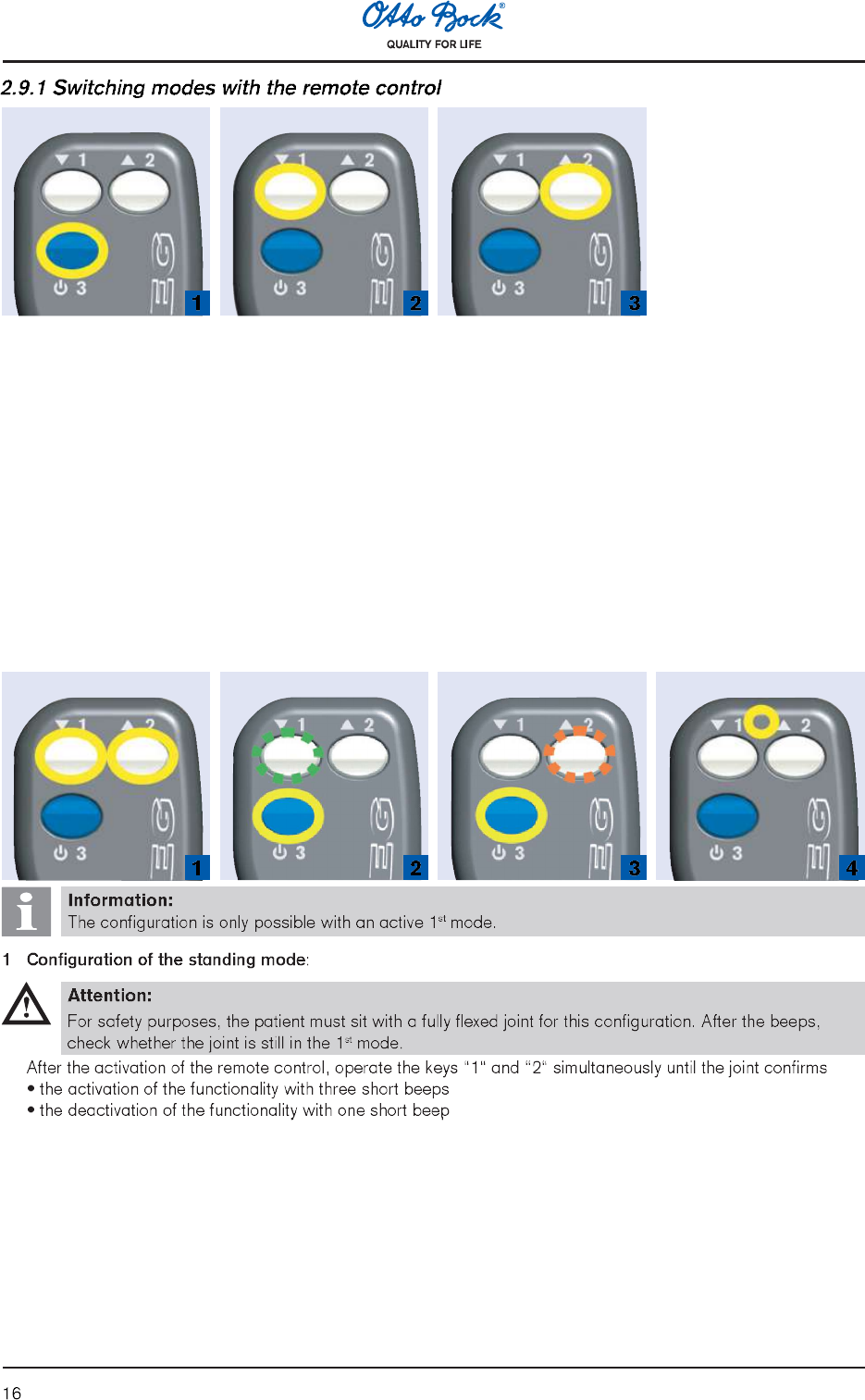 knee joint system, 2.9 Remote control and switching into 2nd mode, 2.11 Important user instructions,