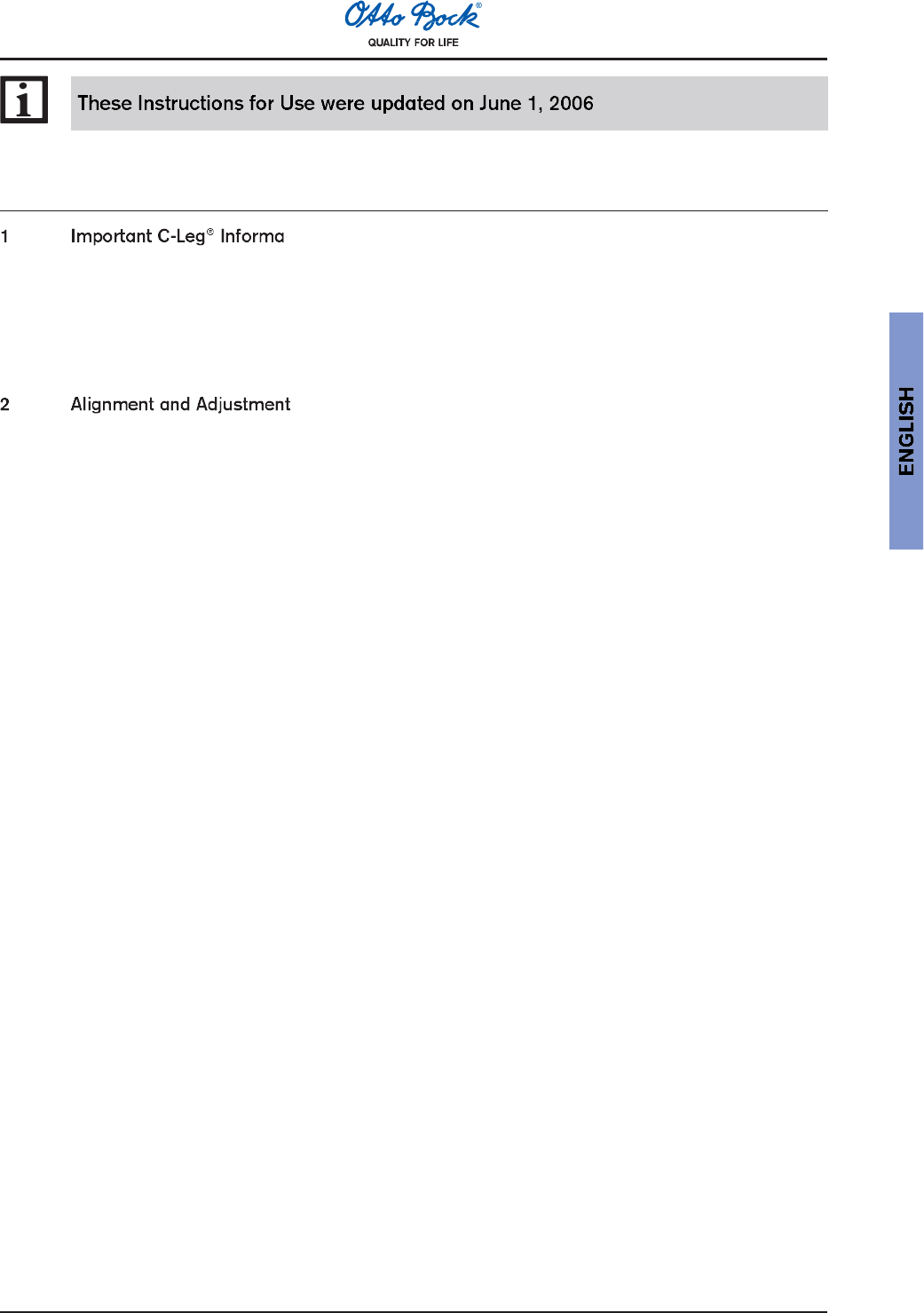 Before using the C-Leg®, please read these Instructions for Use thoroughly! Please pay special attention
