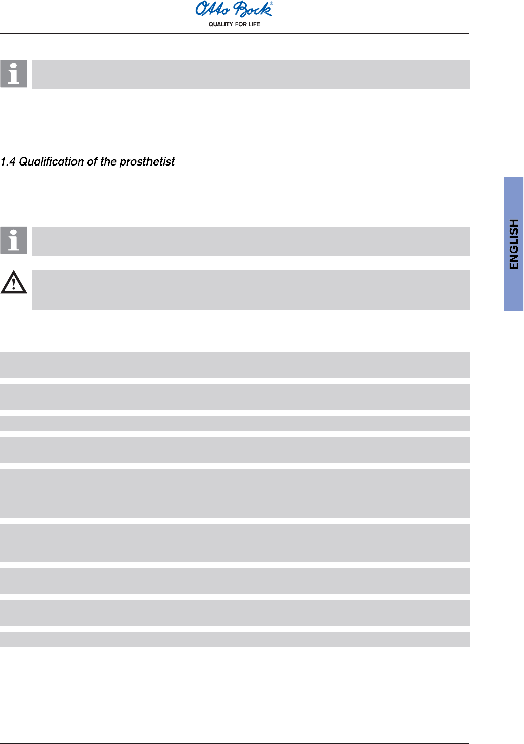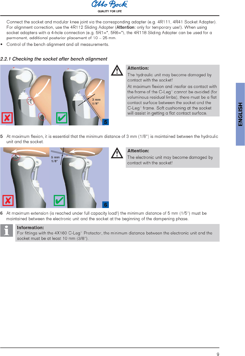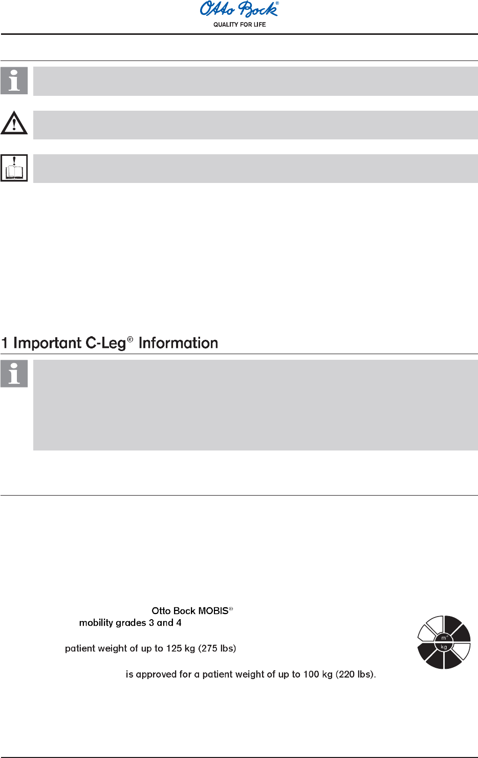 components in accordance with the Otto Bock Mobility System. The manufacturer is not liable for damage caused