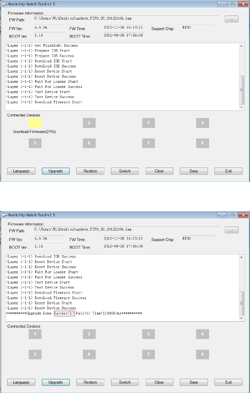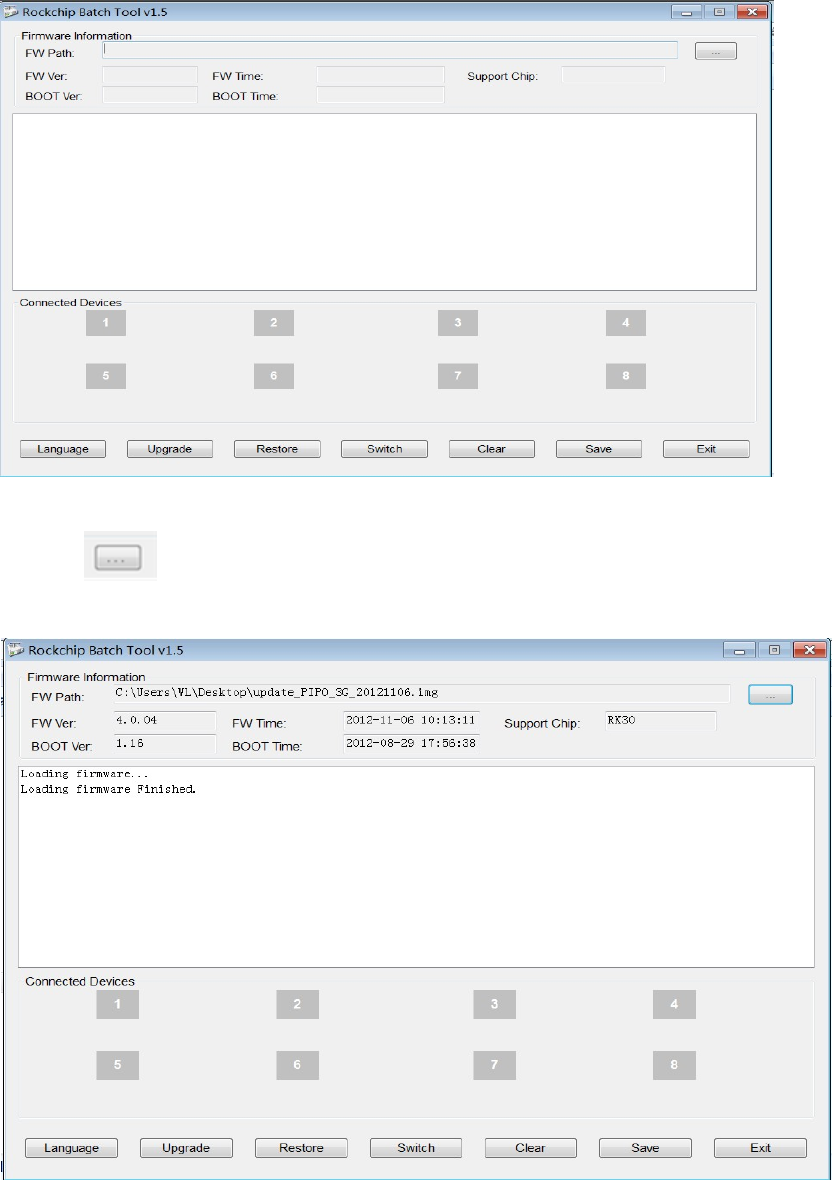 1. Decompress the upgrade tool, double click the “RK batch Tool” icon,