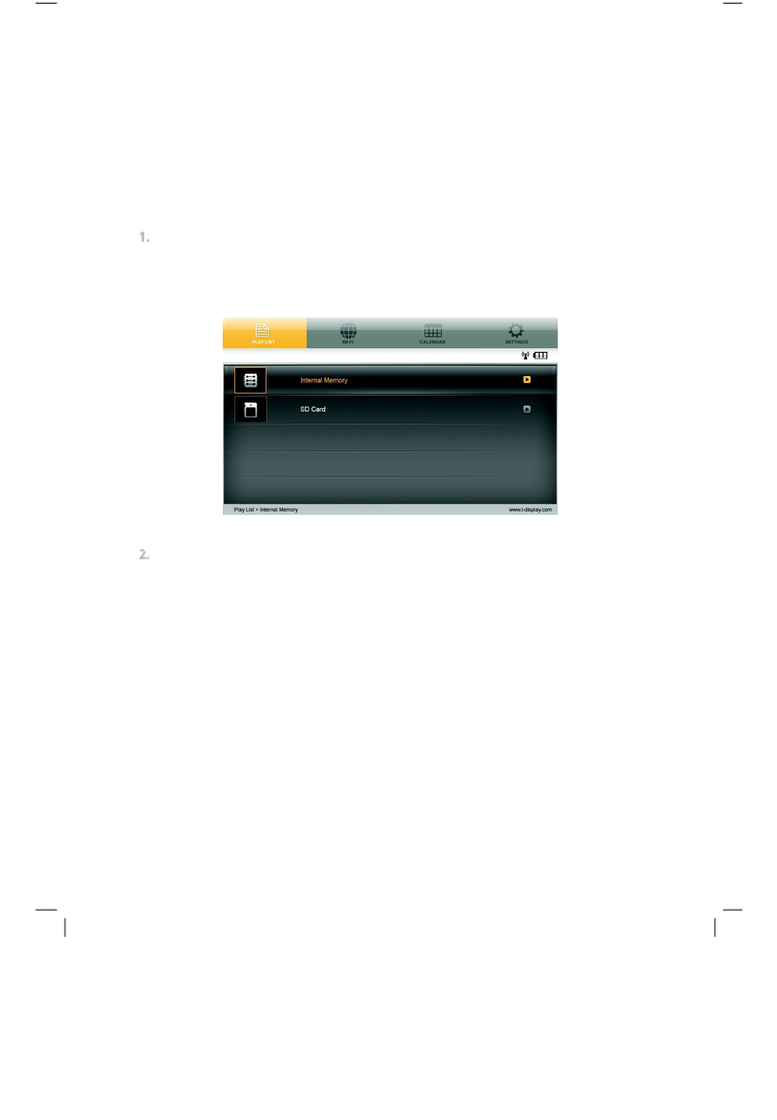 Clear Internal Memory: Erases all content copied from USB or SD Card to