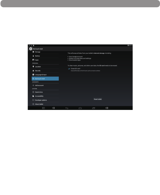 third-party applicaons, then you can erase all data from your device via reset tablet.