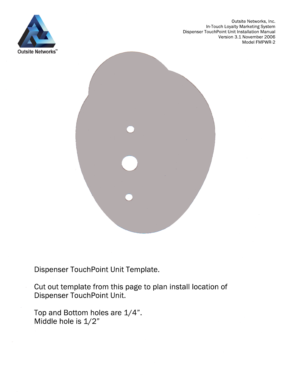 Dispenser TouchPoint Unit Drilling Template