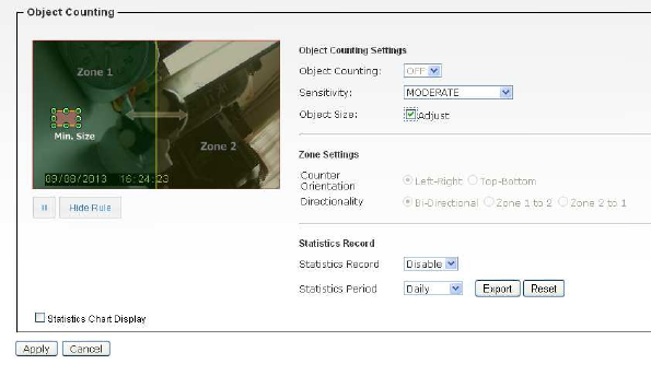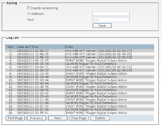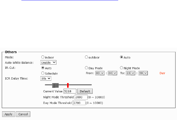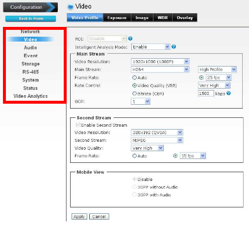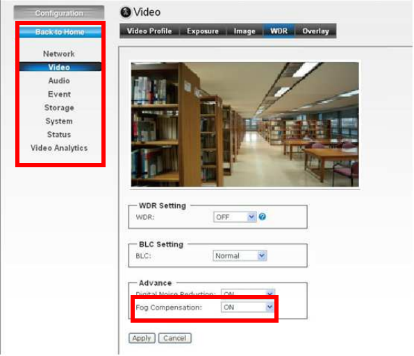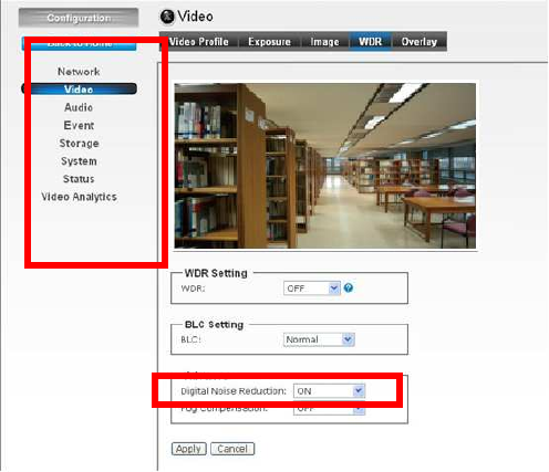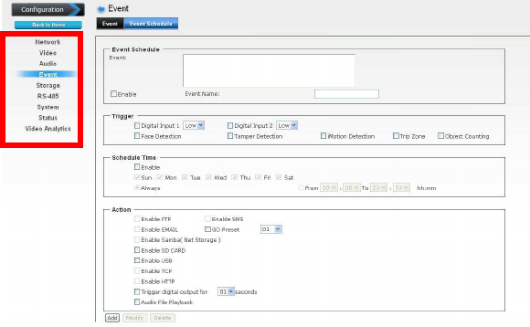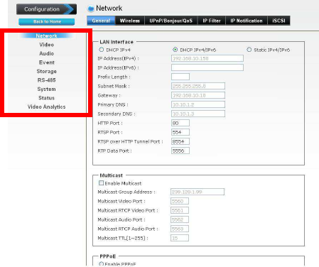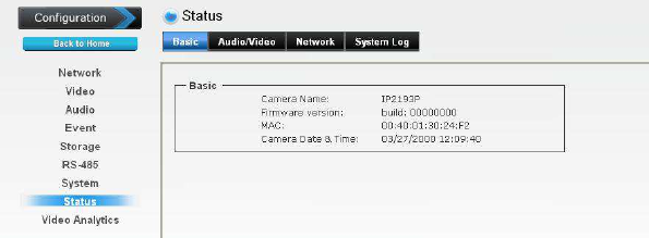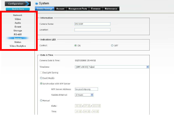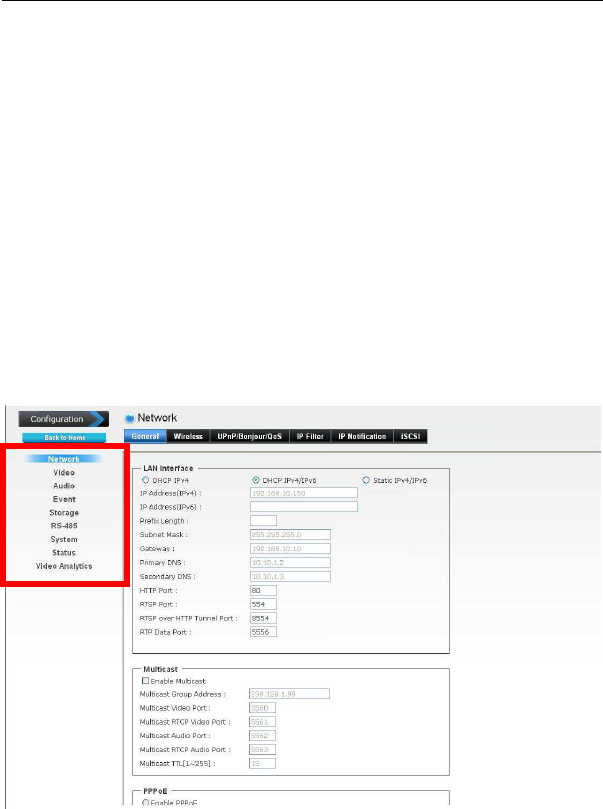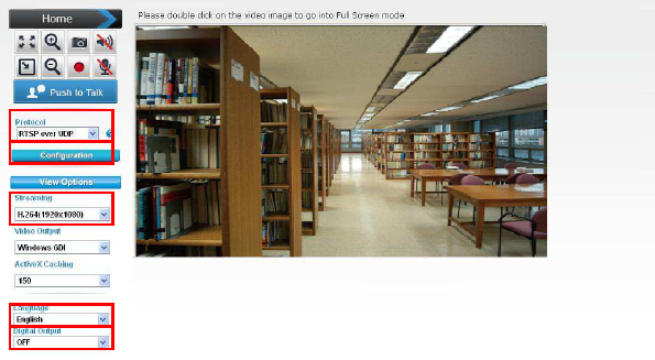 configuration of the camera using the Web browser on
