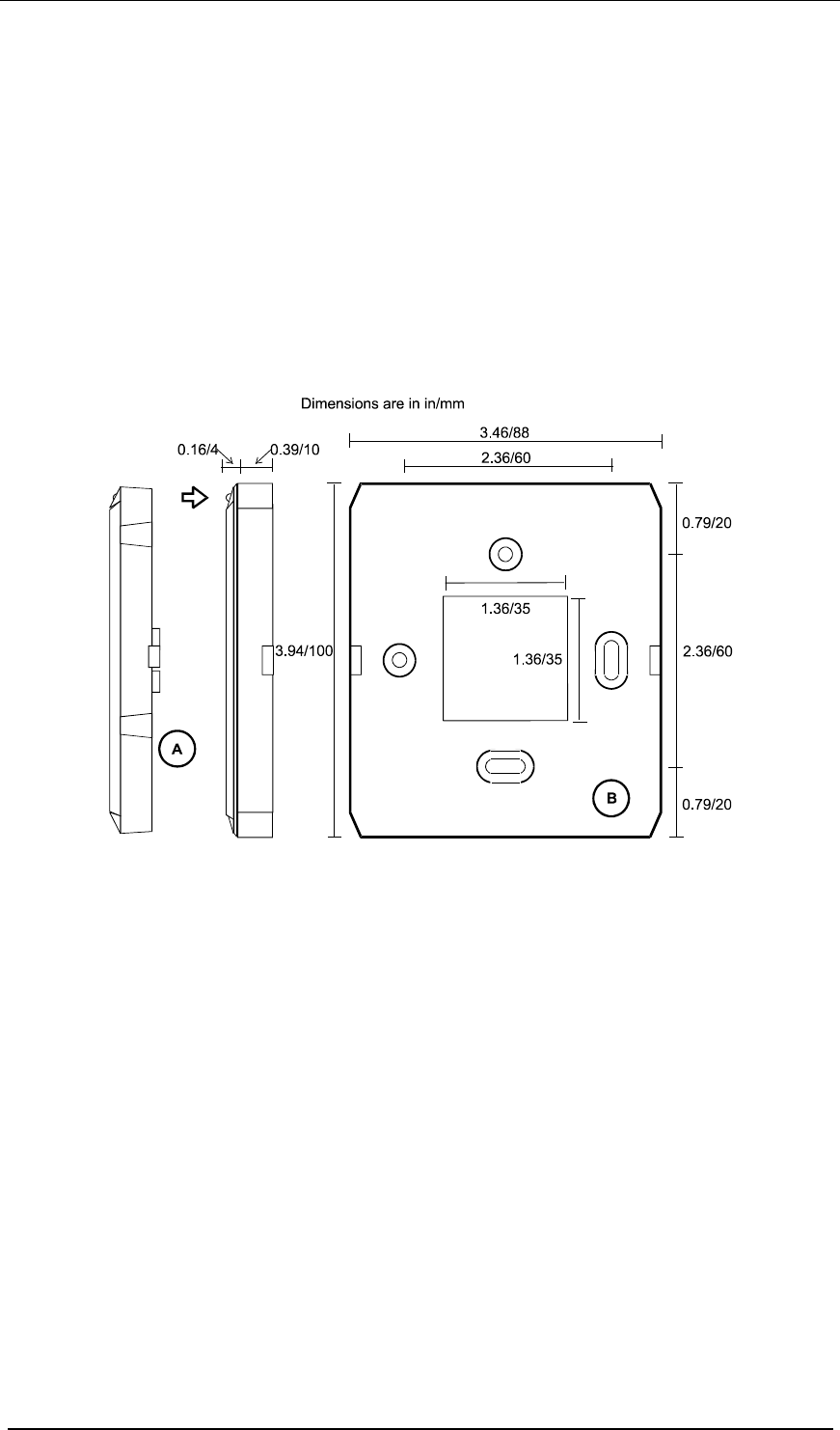 This reader comes in two parts, the reader itself (A) with 4 terminals and the backplate (B). The
