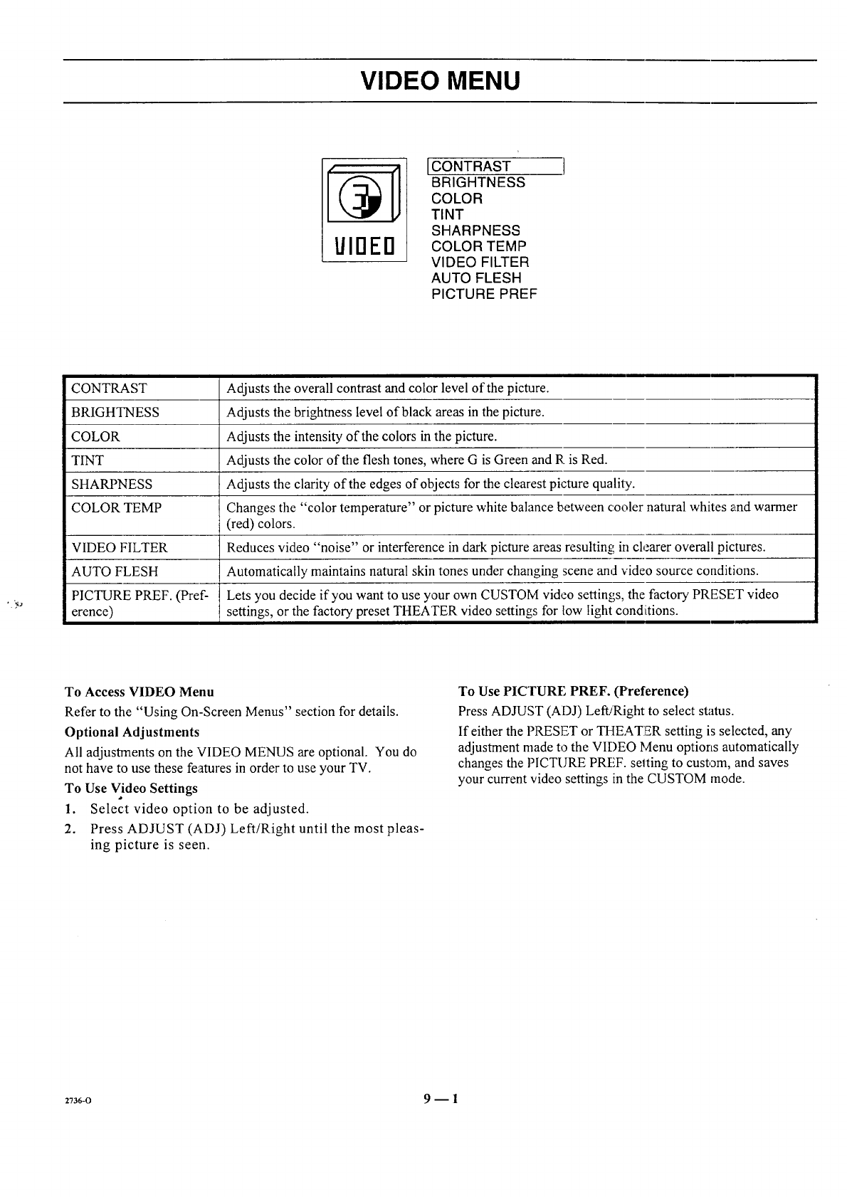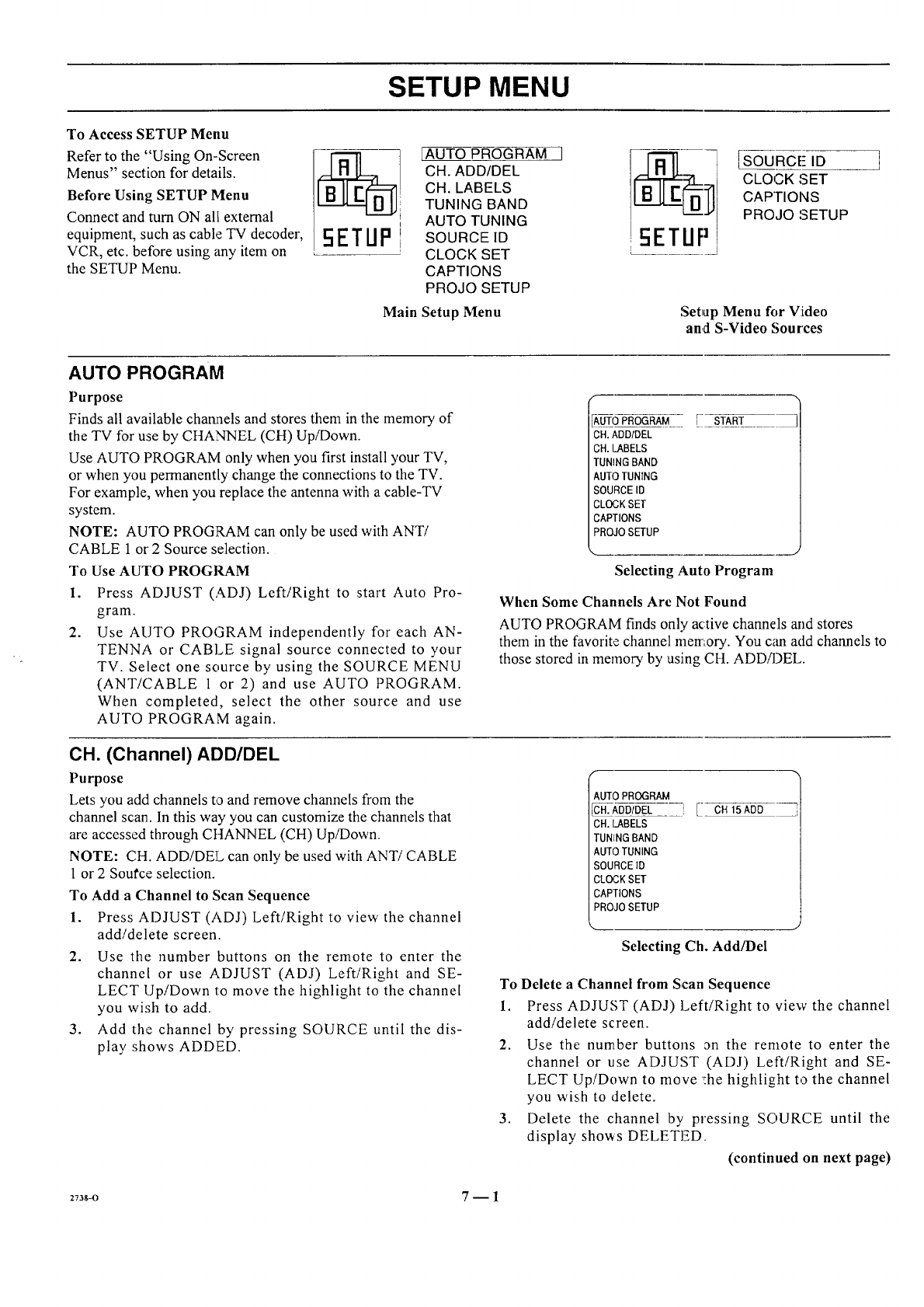 QUICK REFERENCE TO ON-SCREEN MENUS
