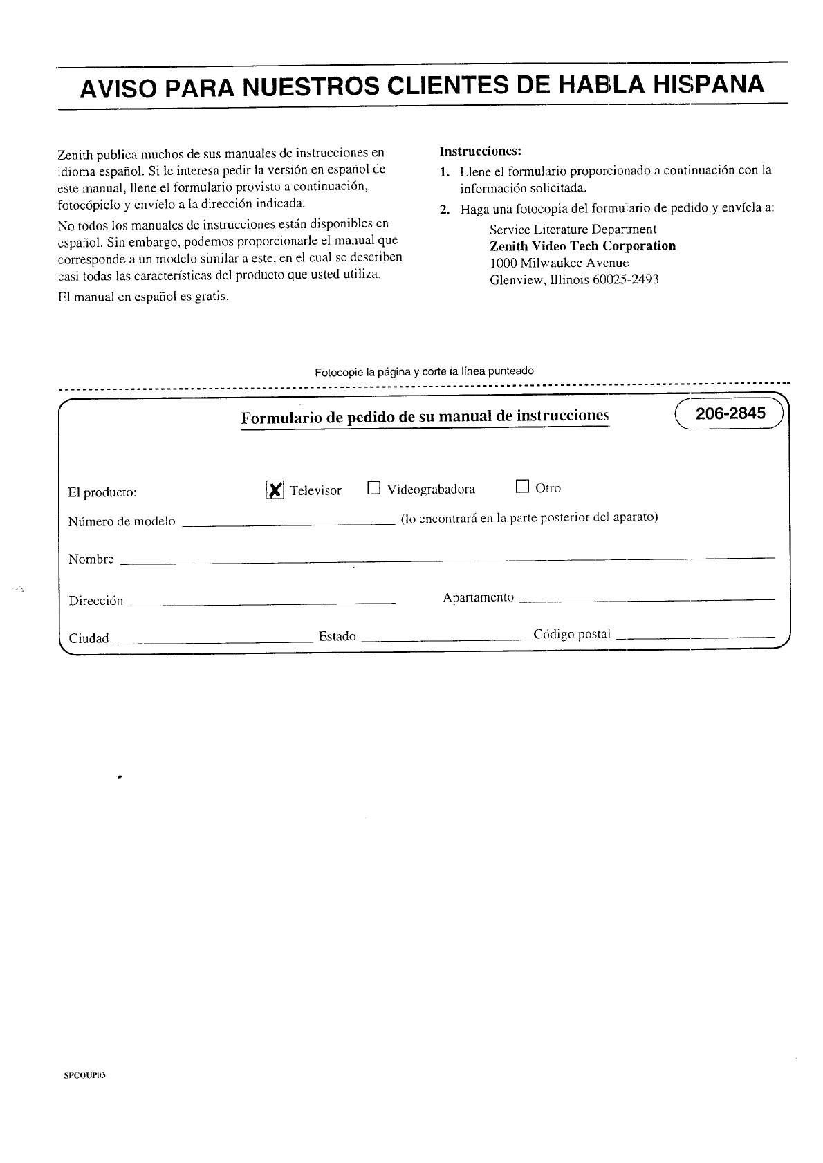 2, Haga una fotocopia del formulario de pedido yenvfela a: