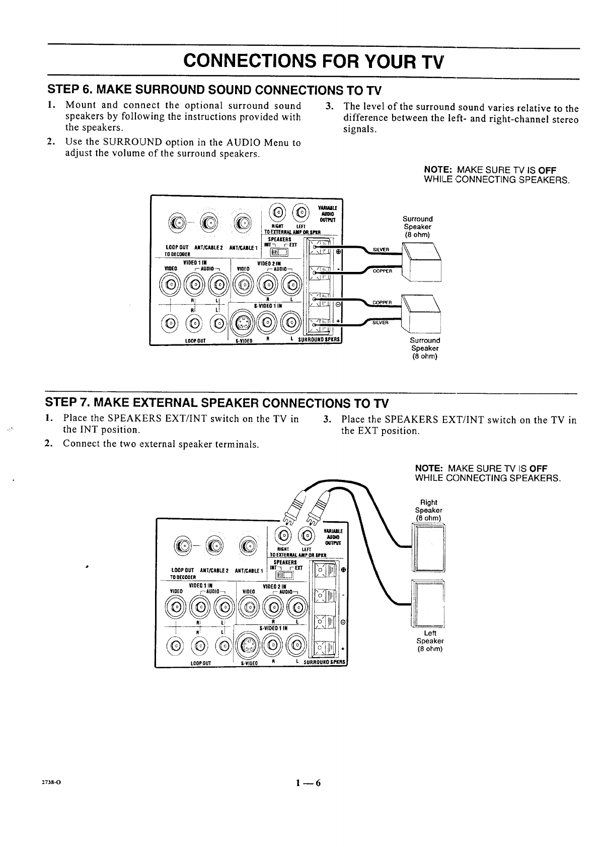Step 7. Make External Speaker Connections to TV ....... 1-6