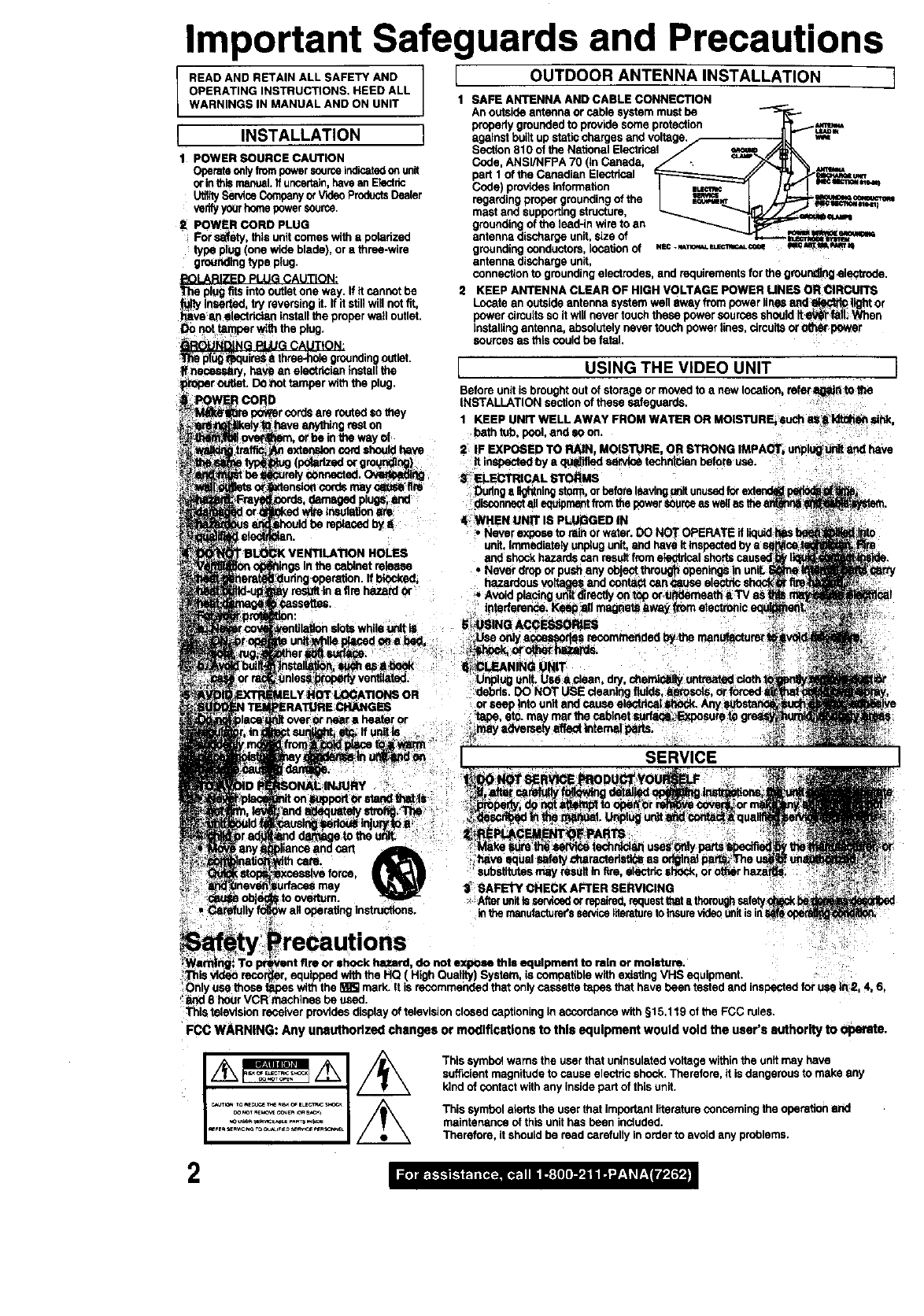 Panasonic Services Company (PASC) Factory Servicenter listed in the Service Directory. Or call toll free 1-800-211-