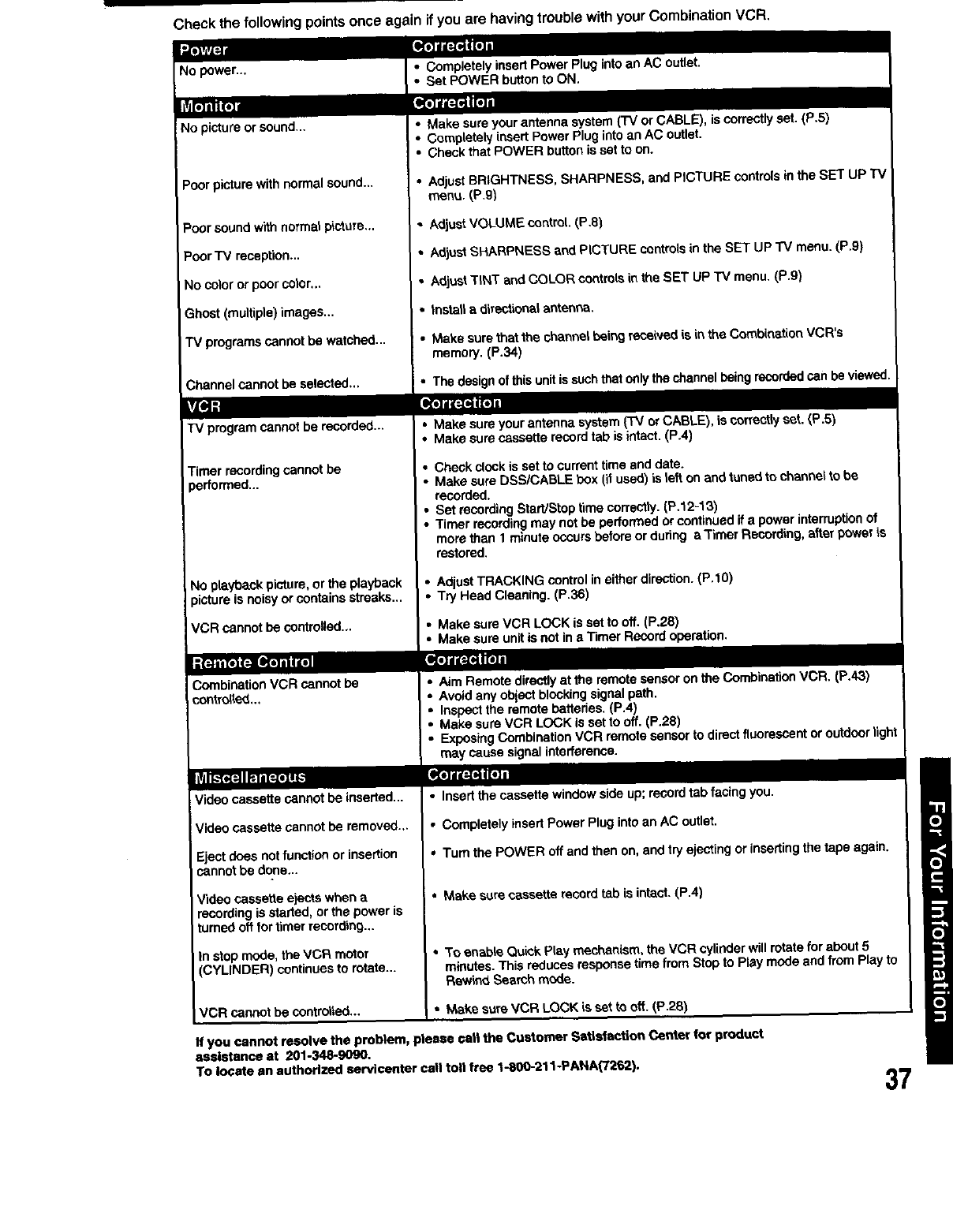 the problem is not handled to your satisfaction, then wdte to the Customer Satisfaction Center at the Panasonic Consumer