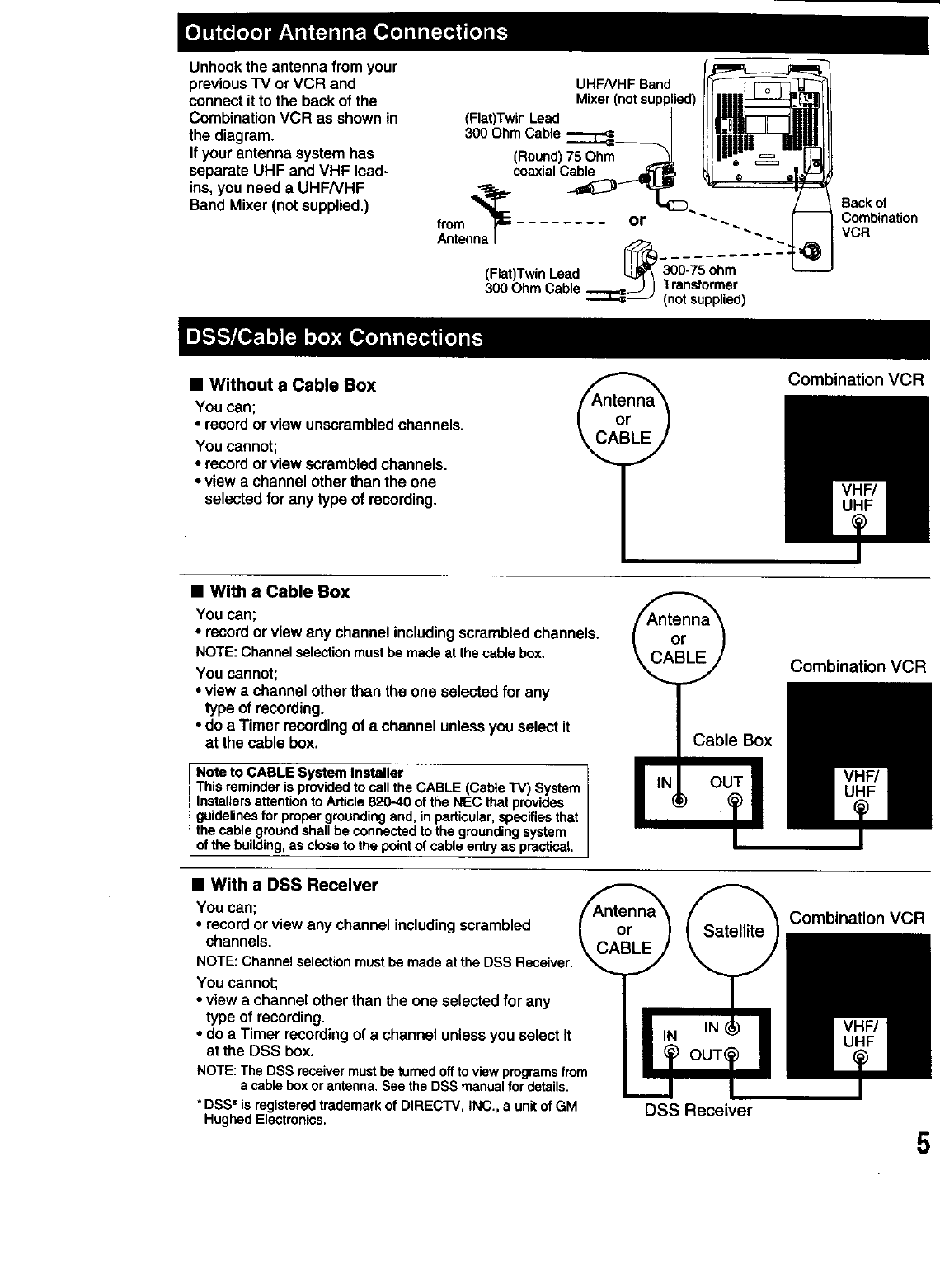 Connections (OutdoorAntennaConnections,OSS/Cable Box Connections) .......... 5