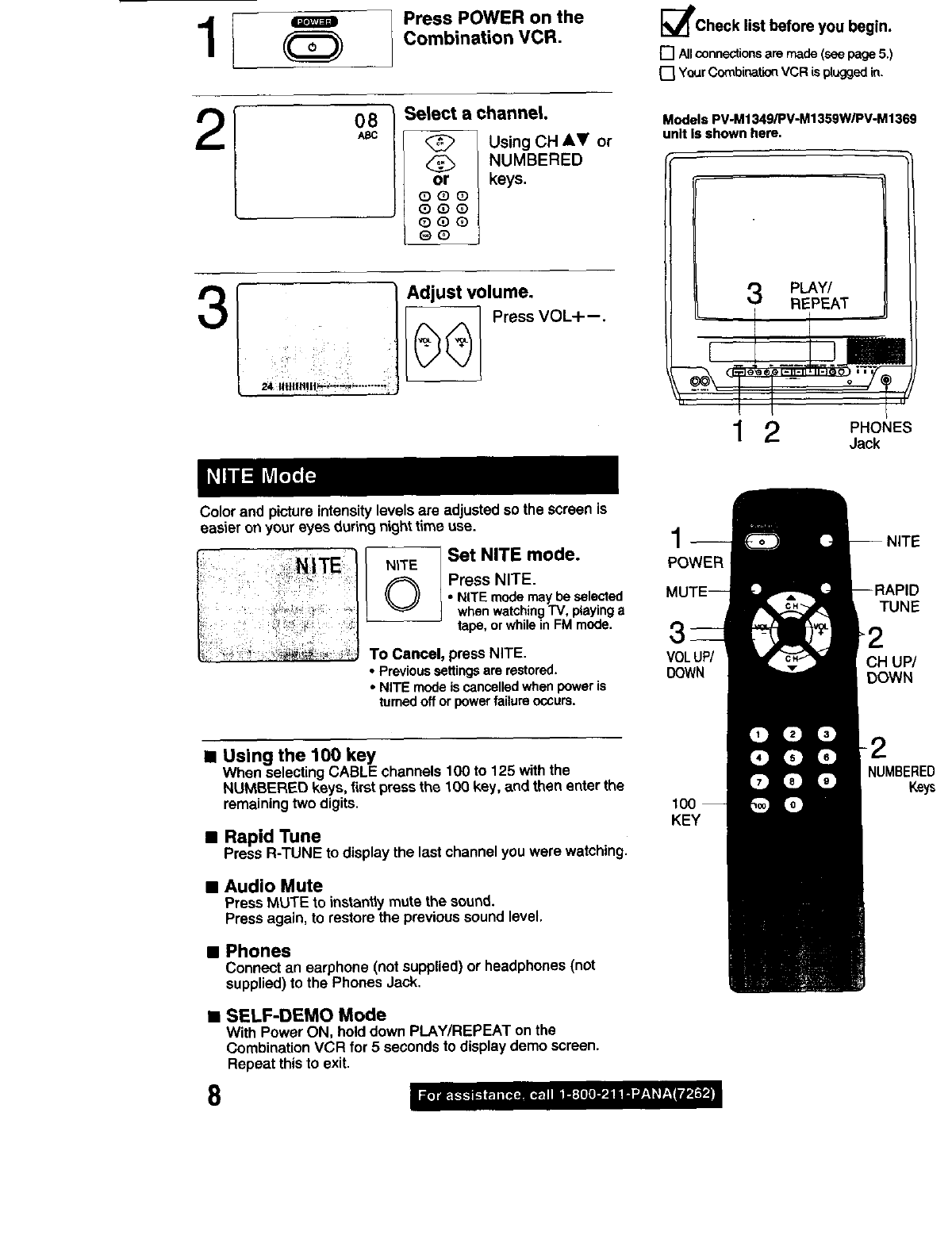 (NITE mode, Using the 100 key, RapidTune, AudioMute, Phones,SELF-DEMO mode) ...... 8