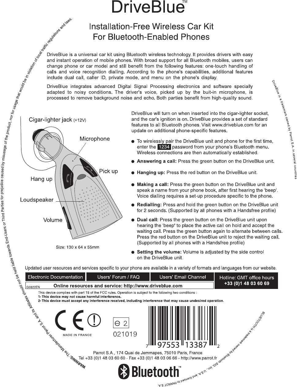PARROT CK3000E DriveBlue User Manual