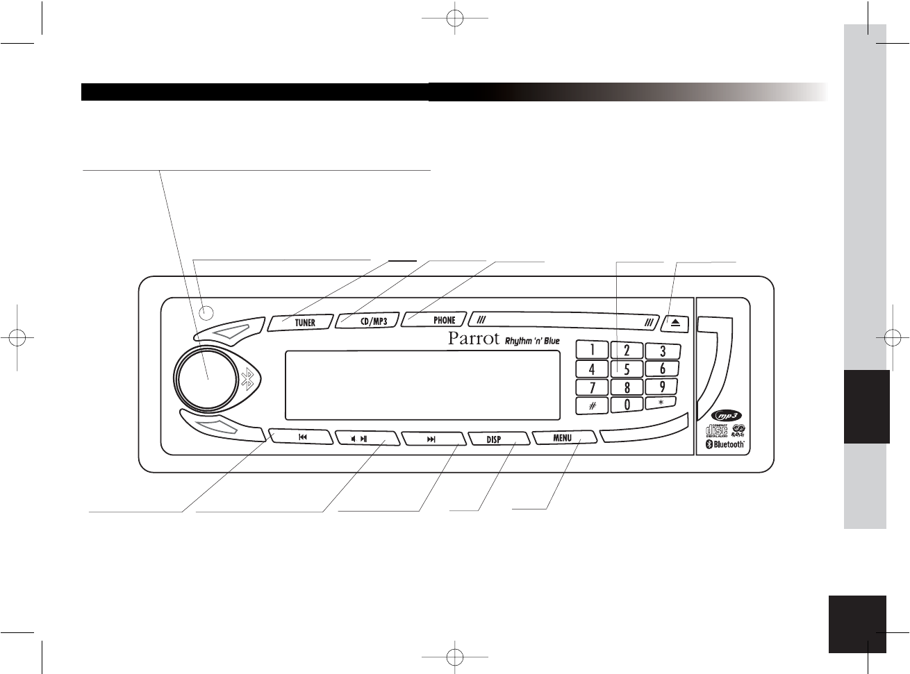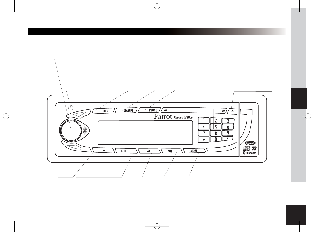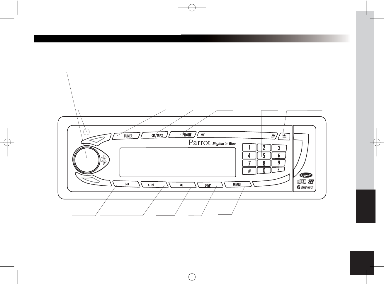 (Sintonizzatore), CD/MP3 e Phone (Telefono).