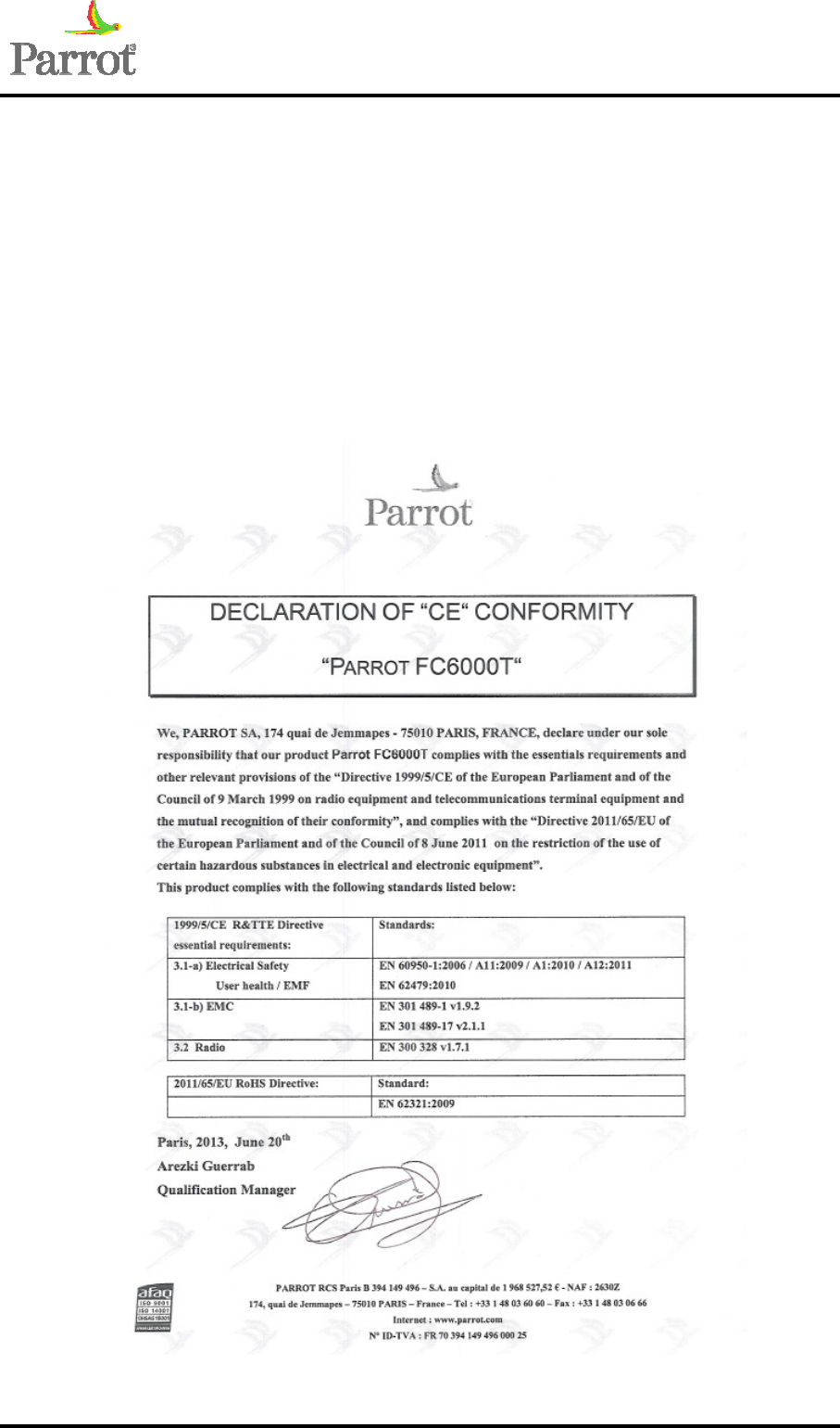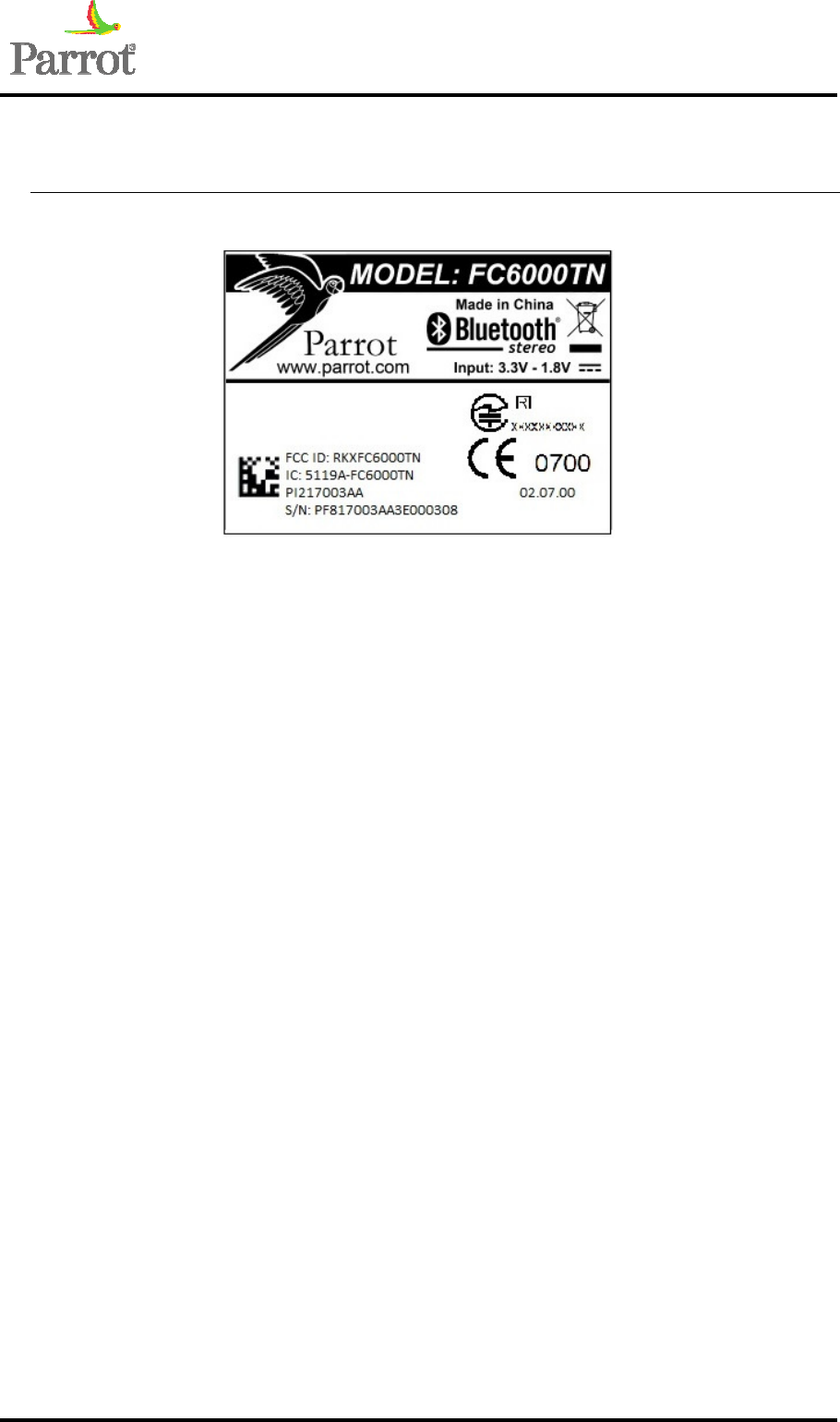 PARROT FC6000TS Bluetooth Module User Manual FC6000T Datasheet ed3