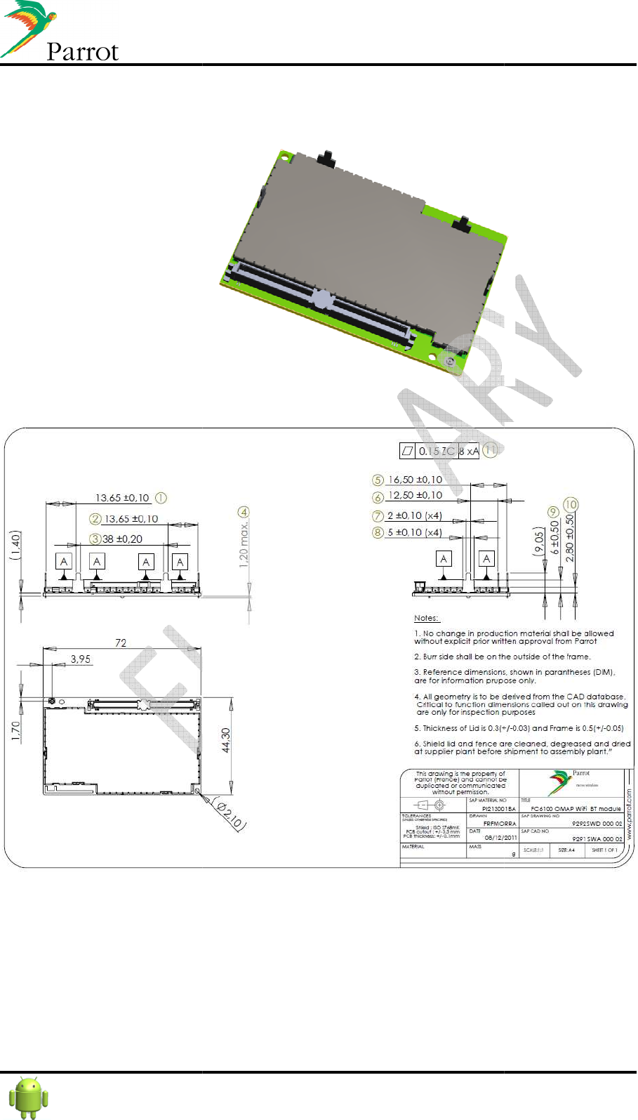 PARROT FC6100ASPEN WLAN Transceiver User Manual FC6100 ASPEN Datasheet 21fev2012