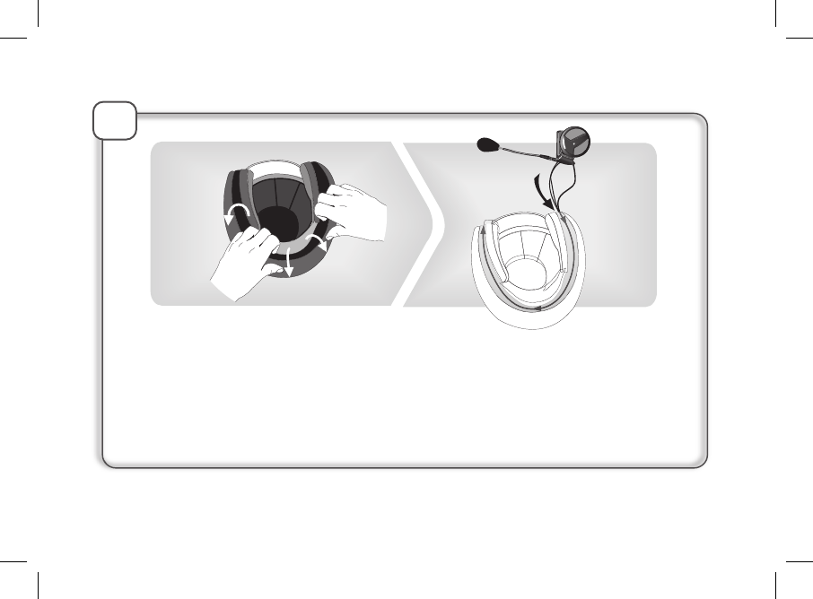 Route the cables inside the helmet, between the protection foam and the internal shell of