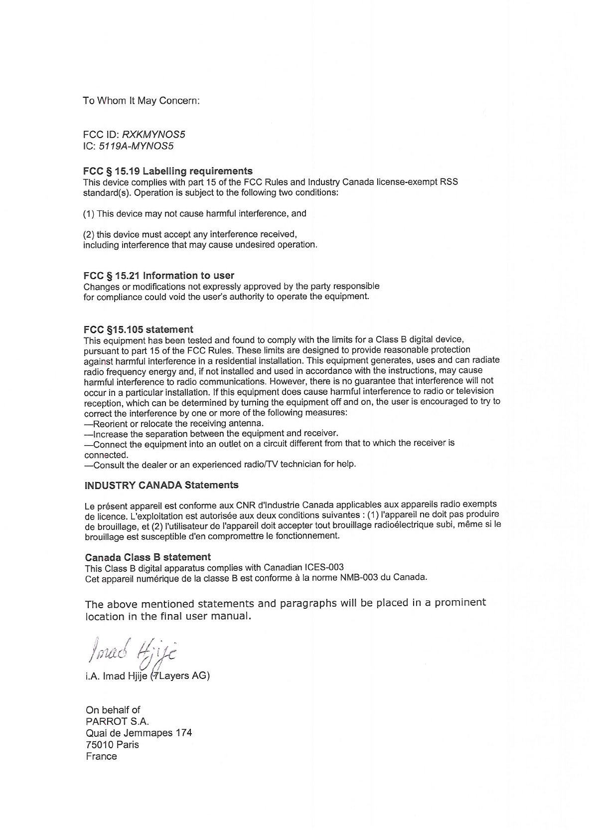 PARROT MYNOS5 Bluetooth Hands-free MINIKIT User Manual manual statements