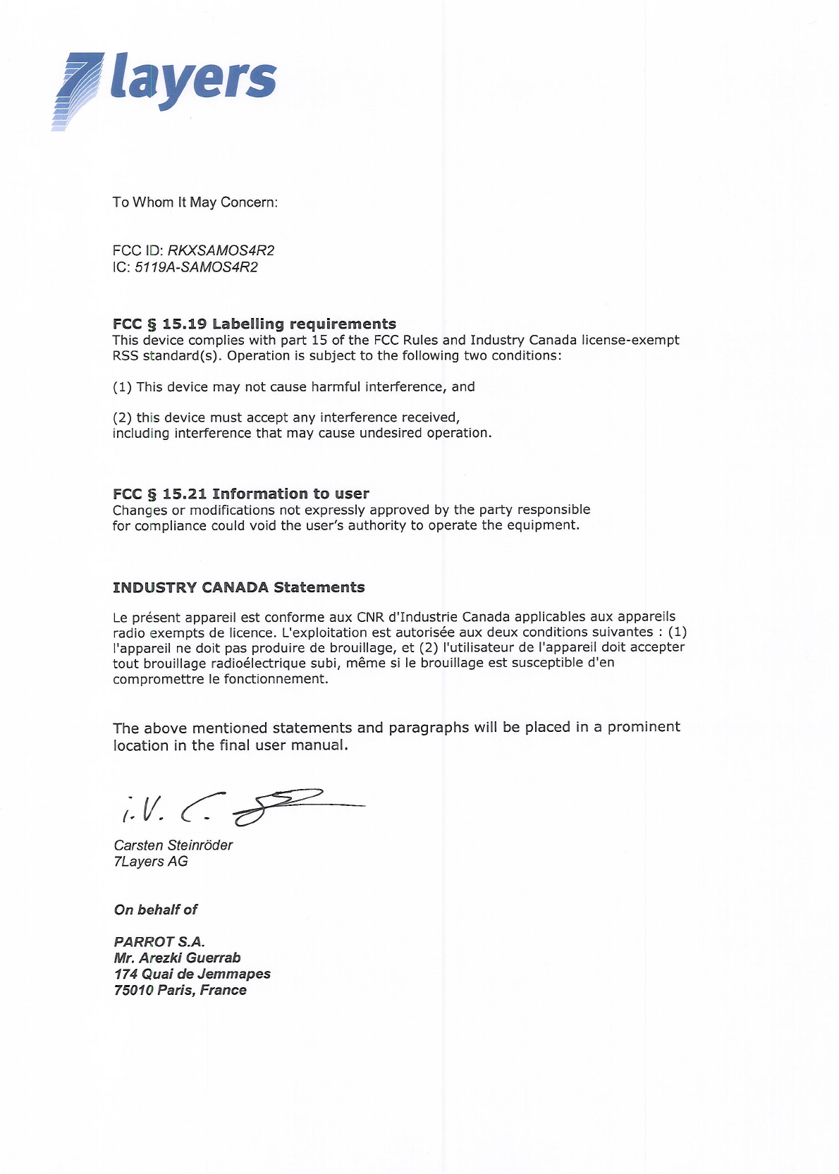 PARROT SAMOS4R2 Remote Control for Bluetooth Carkit User Manual annex to