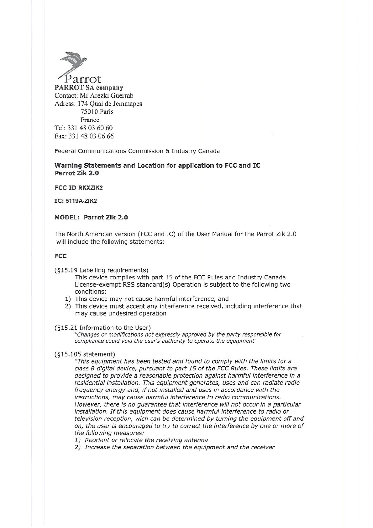 PARROT ZIK2 Bluetooth Headset User Manual Information to user