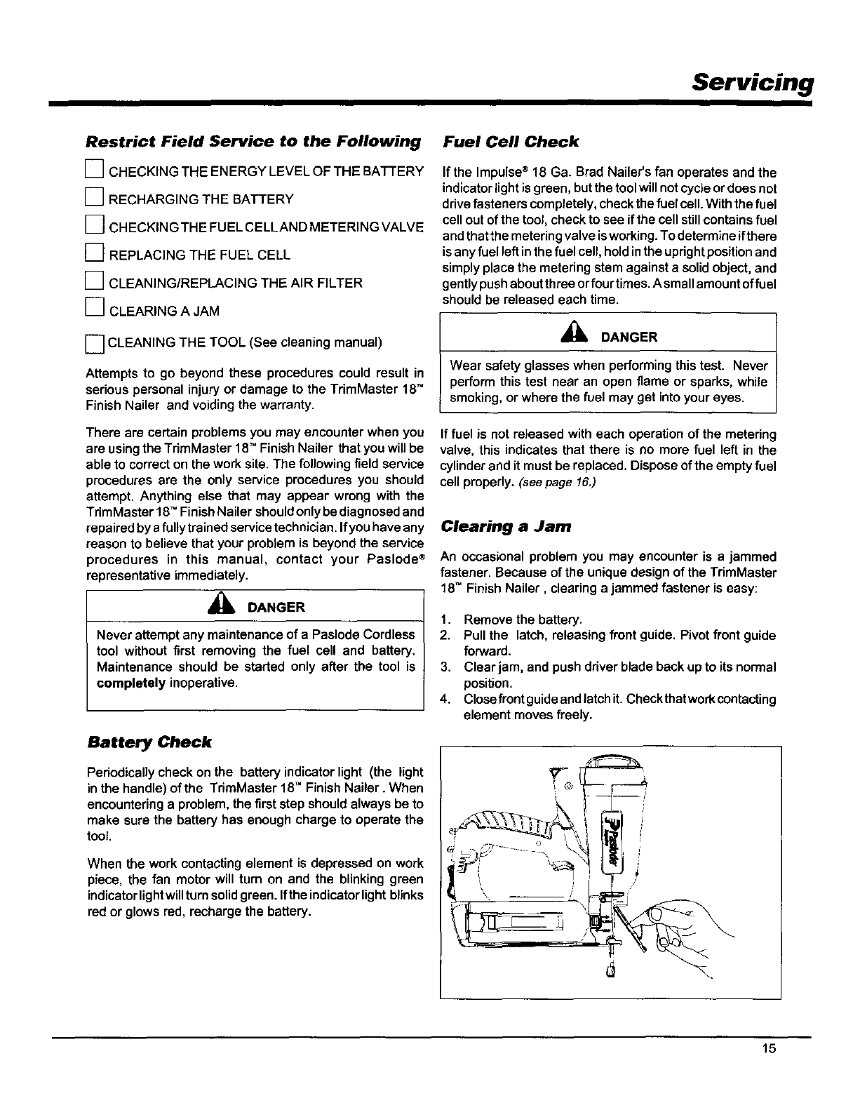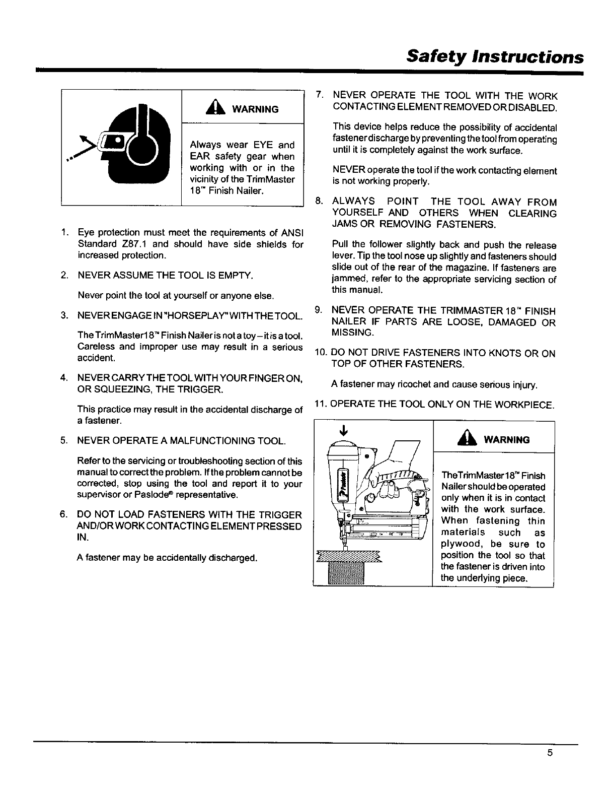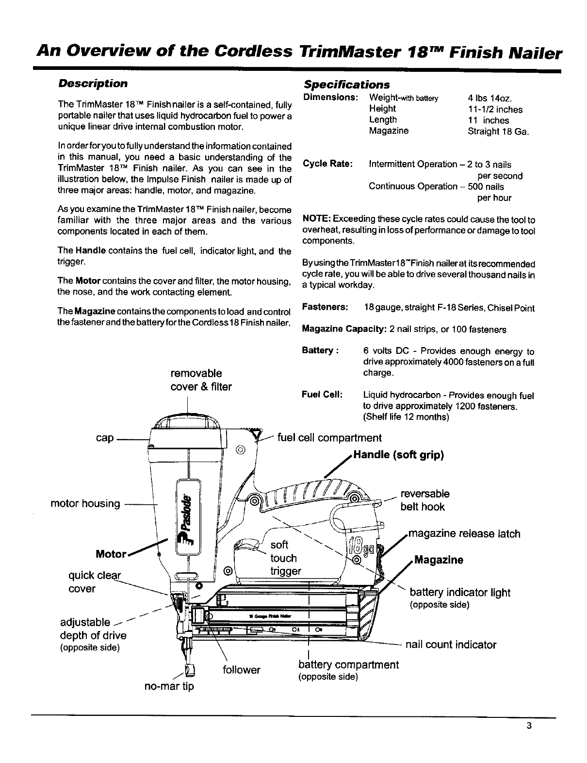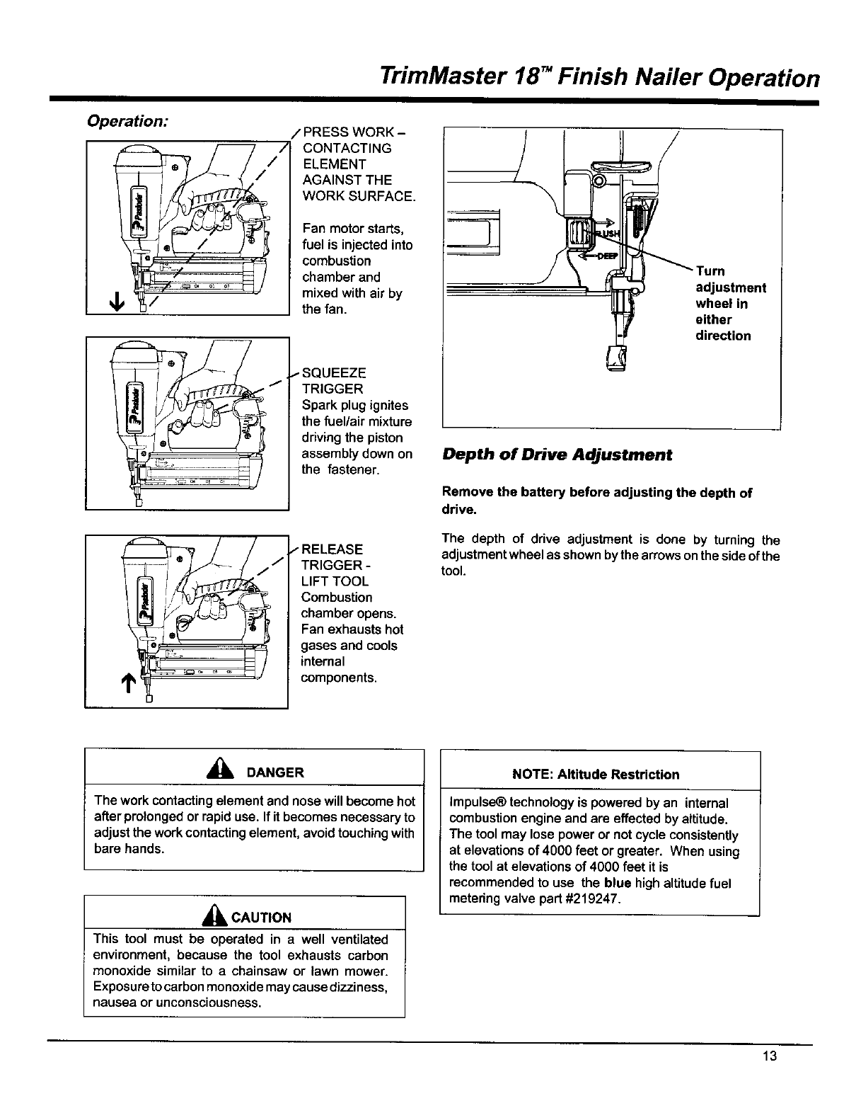 TrimMaster 18T" Finish Nailer Operation ...................... 13