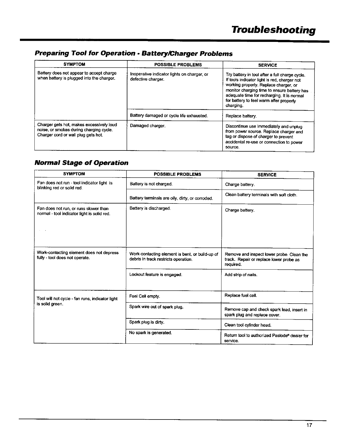 If nailer will not operate after following the above service directions, return the tool to an authorized Paslode ®