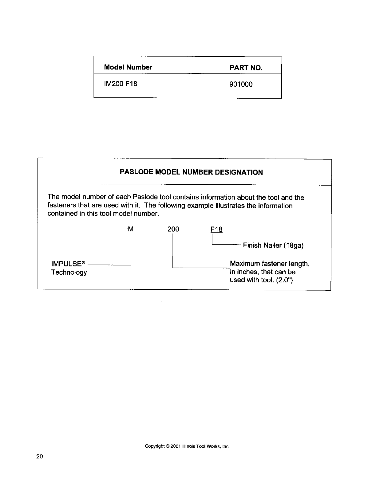 PASLODE MODEL NUMBER DESIGNATION