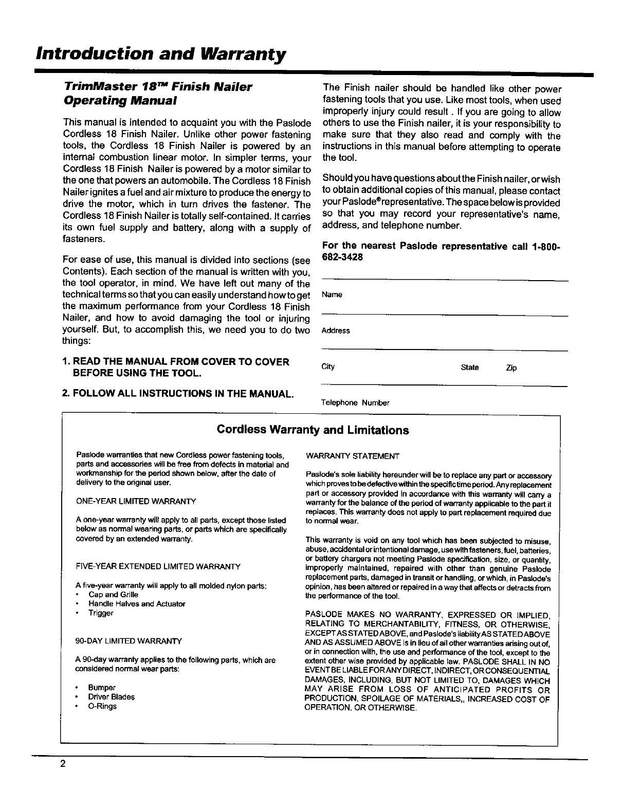 This manual is intended to acquaintyou with the Paslode