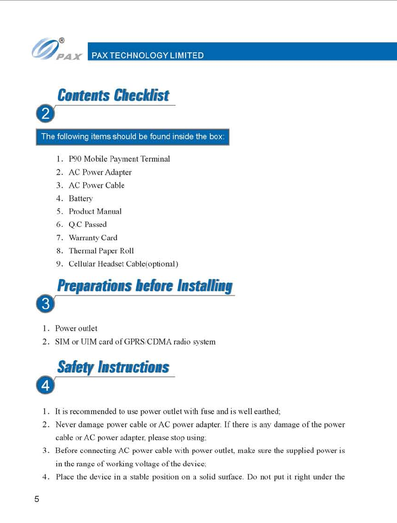 PAX Technology P90 Mobile Payment Terminal User Manual