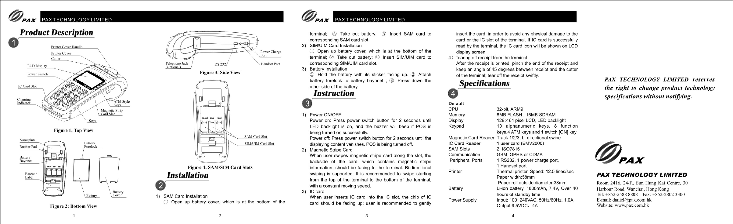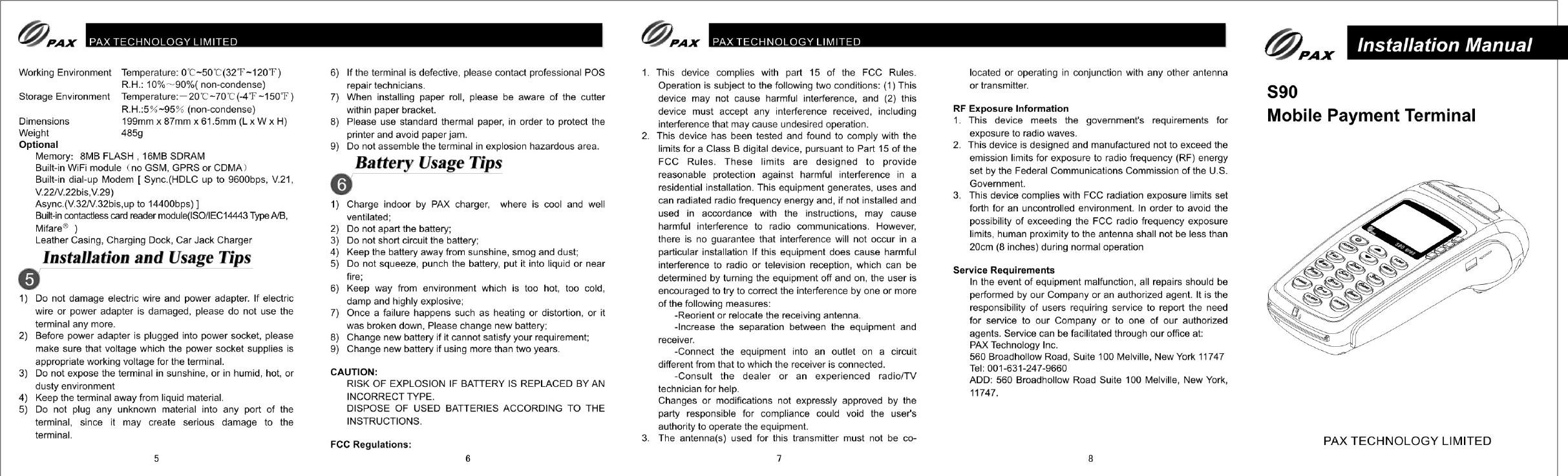 PAX Technology S90W Mobile payment Terminal User Manual