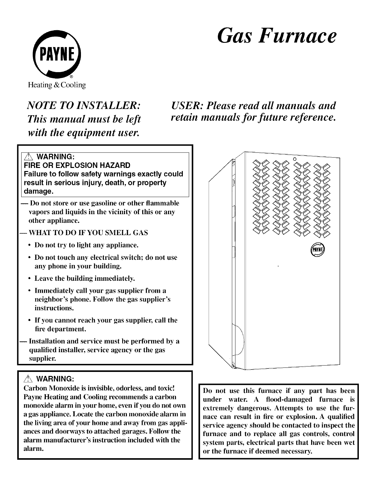 PAYNE Furnace/Heater, Gas Manual L0408334
