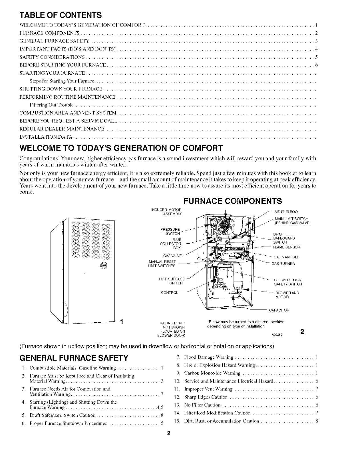 WELCOME TO TODAY'S GENERATION OF COMFORT .................................................................. 1