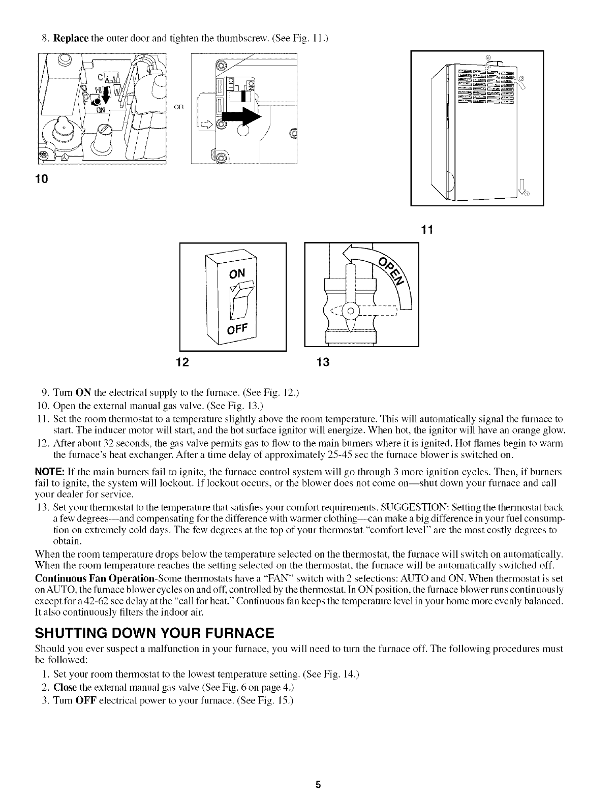 4. Restore electrical power to the furnace. (See Fig. 12.)