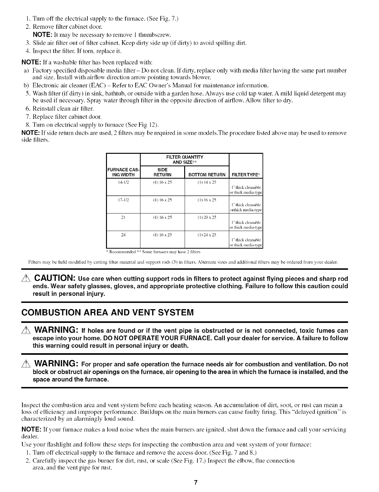 WARNING: For proper and safe operation the furnace needs air for combustion and ventilation. Do not