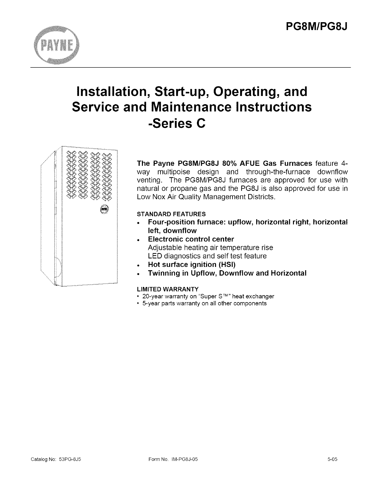 Catalog No: 53PG-8J5 Form No. IM-PG8J-05 5-05
