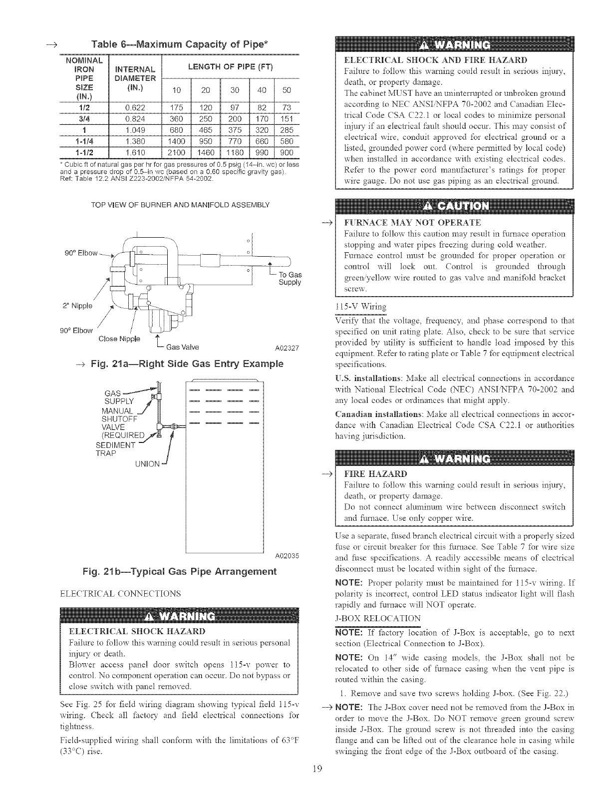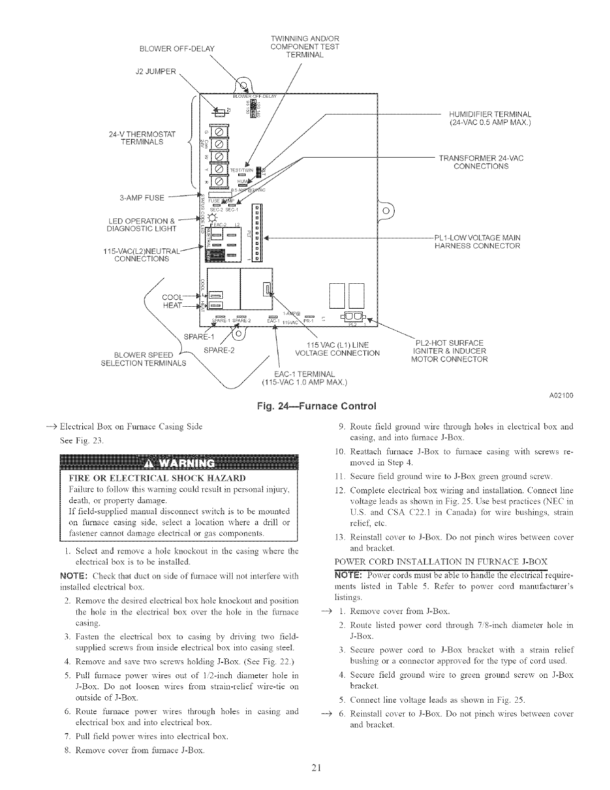 Power Cord Installation in Furnace J=Box ............. 21