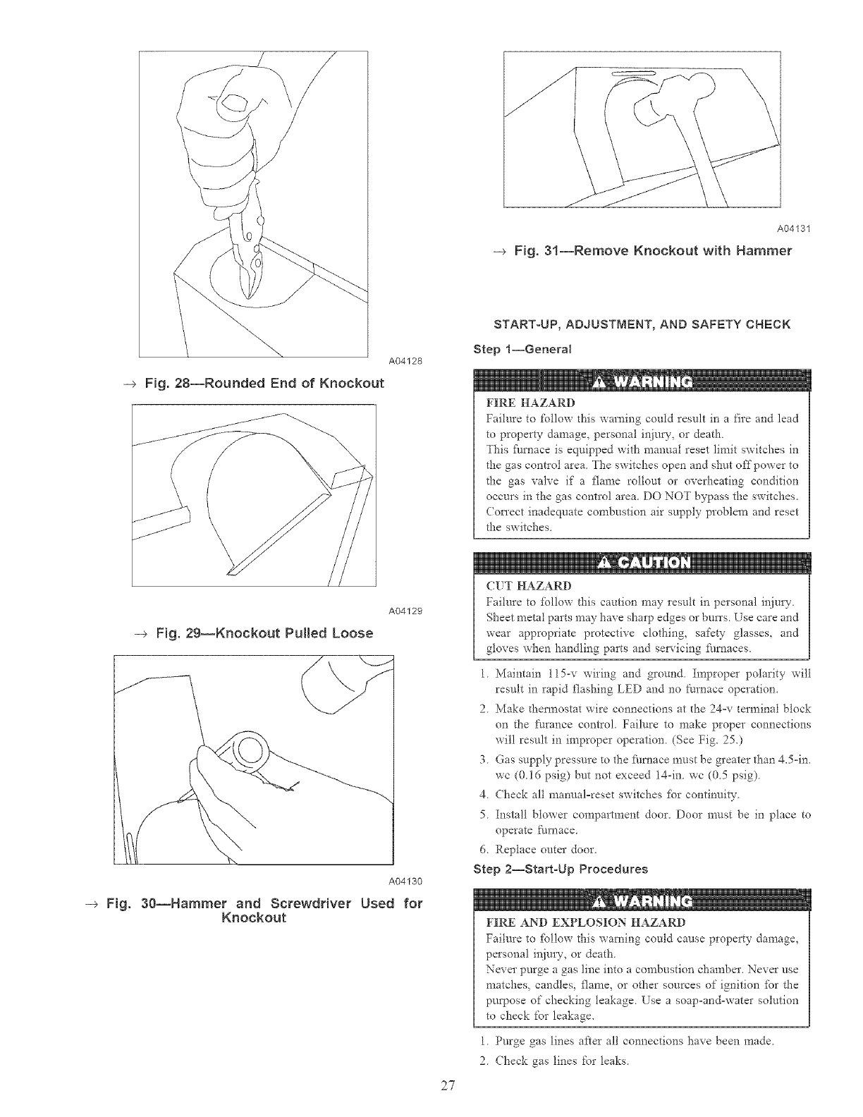 START°UP, ADJE STMENT, AND SAFETY CHECK ............ 27