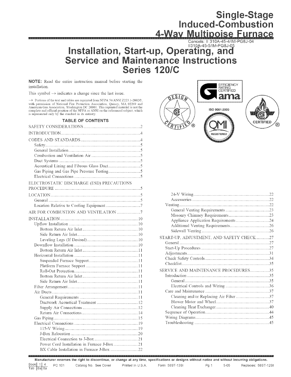 PC 101 Catalog No See Cover Printed Jn USA Form 58ST-13SI Pg 48 5-05 Replaces: 58ST-12SI