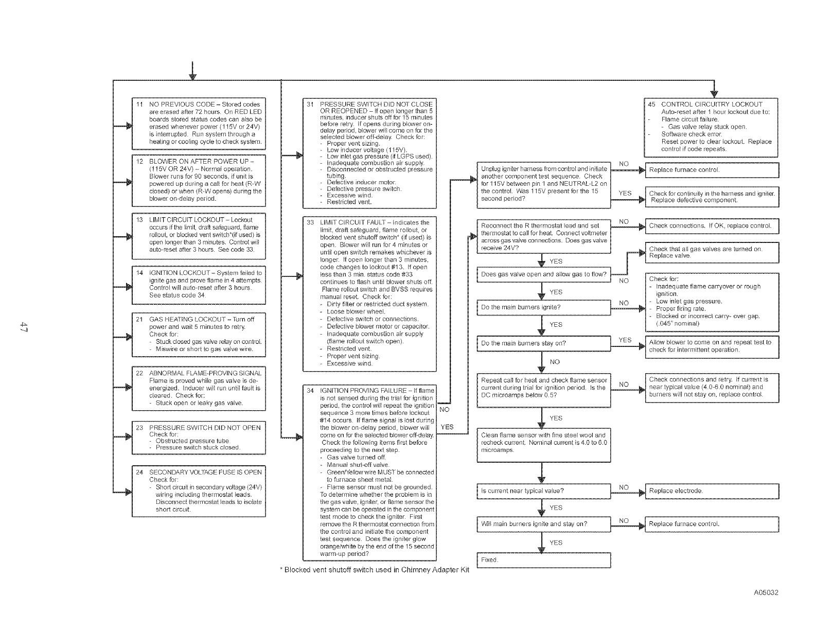 * Blocked vent shutoff switch used in Chimney Adapter Kit