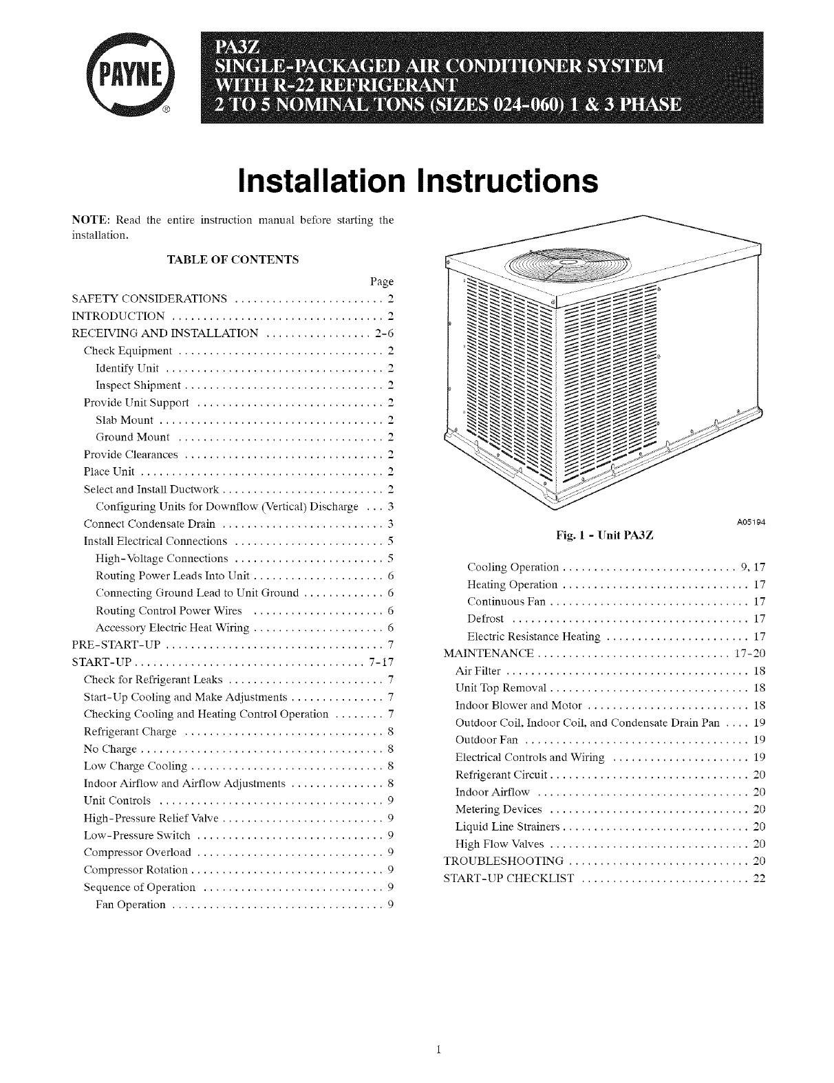 User Manual: PAYNE PAYNE Package Units(both units combined) Manual PAYNE Package Units(both units combined) Owner's Manual, PAYNE Package Units(both units combined) installation guides
