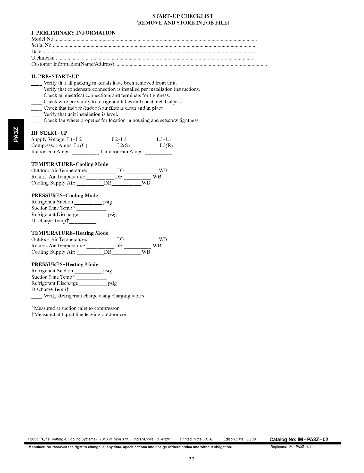 2006 Payne Heating & Cooling Systems • 7310 W Morris St * Indianapolis, IN 46231 Printed in the USA. Edition Date: 08/06